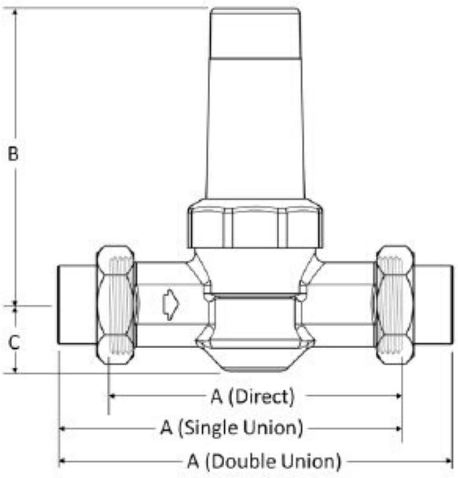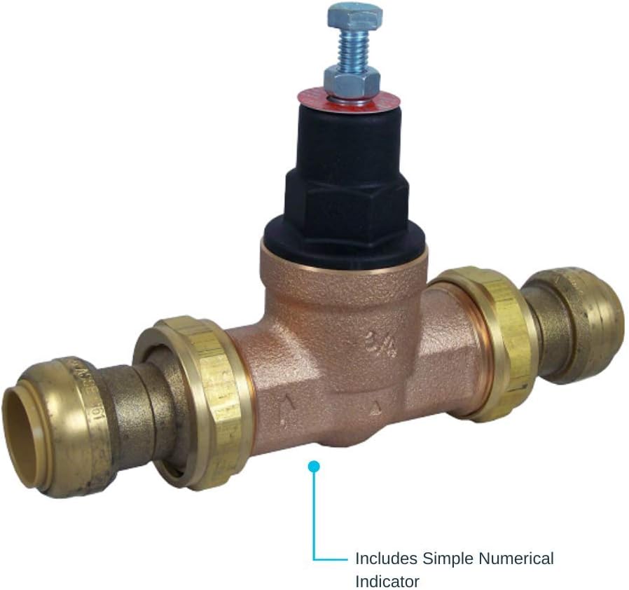 Keep water pressure regulated in any commercial or residential setting with this double union water regulating valve. This pressure-regulating valve helps to regulate downstream pressure in commercial and residential water applications and features a patented half-cartridge design that enables servicing without having to remove the valve body. This water pressure regulating valve features an innovative push-to-connect design which allows for quick and easy installation and does not require any additional tools. Ideal for use in tight spaces, this pressure regulator can be installed on wet lines. The water pressure regulator is rated to 45 PSI, easily adjustable between 10 to 70 PSI, and is compatible with PEX, copper, CPVC, PE-RT, and SDR-9 HDPE pipe.