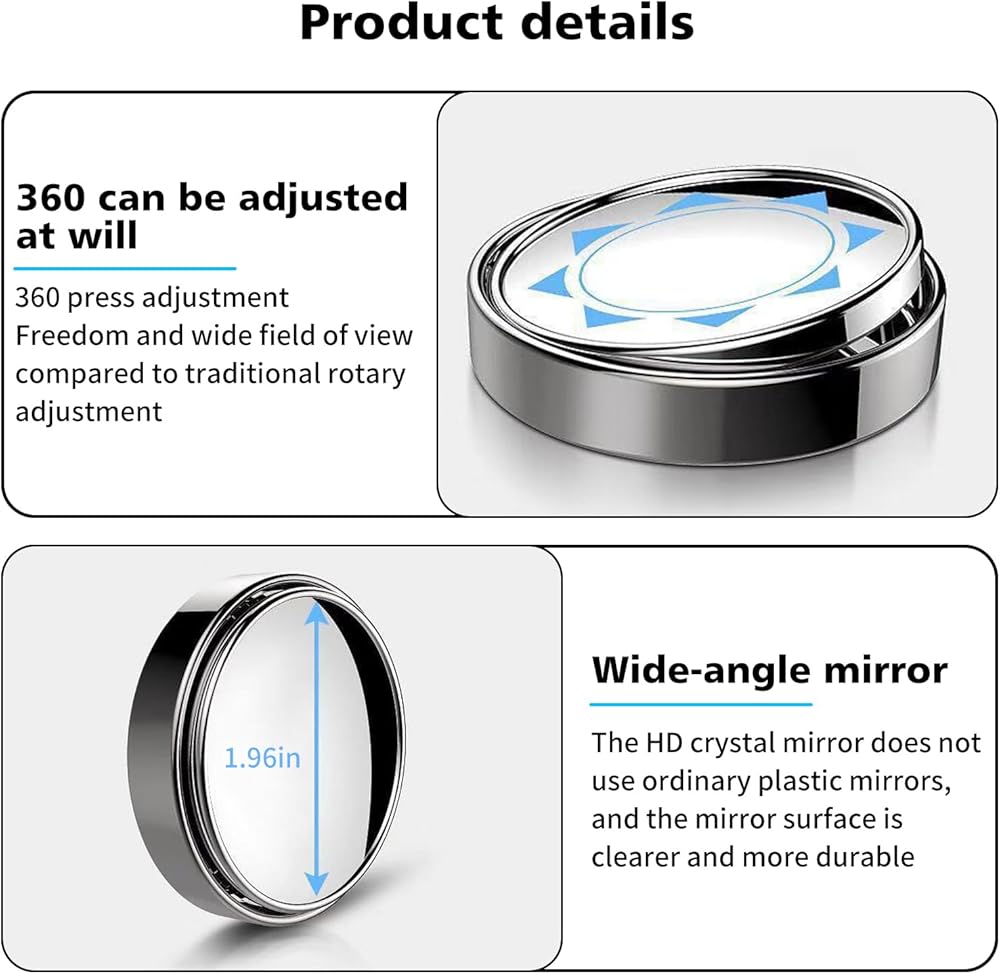 • 360° All-round Adjustment: This reversing blind spot mirror can be adjusted in all directions by pressing in the horizontal and vertical directions. This means that you can freely adjust the angle and position of the mirrors according to your needs and driving position to obtain the best view of the rear view.