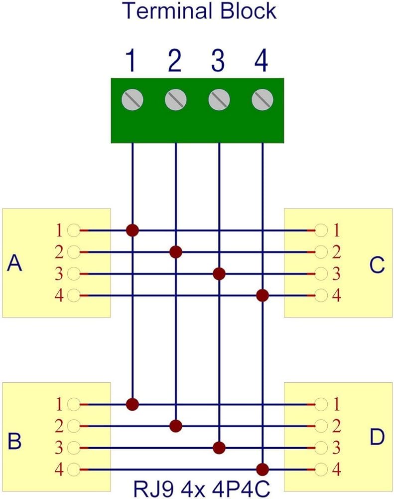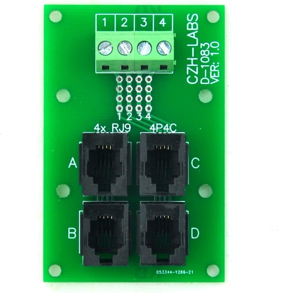 إلكترونيات-صالون RJ9 4P4C جاك 4-Way Buss Breakout Board، كتلة طرفية، موصل.