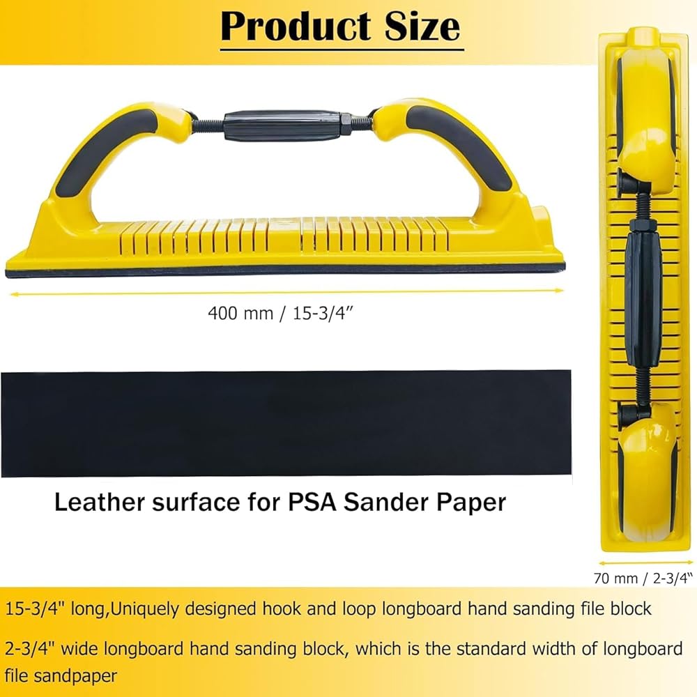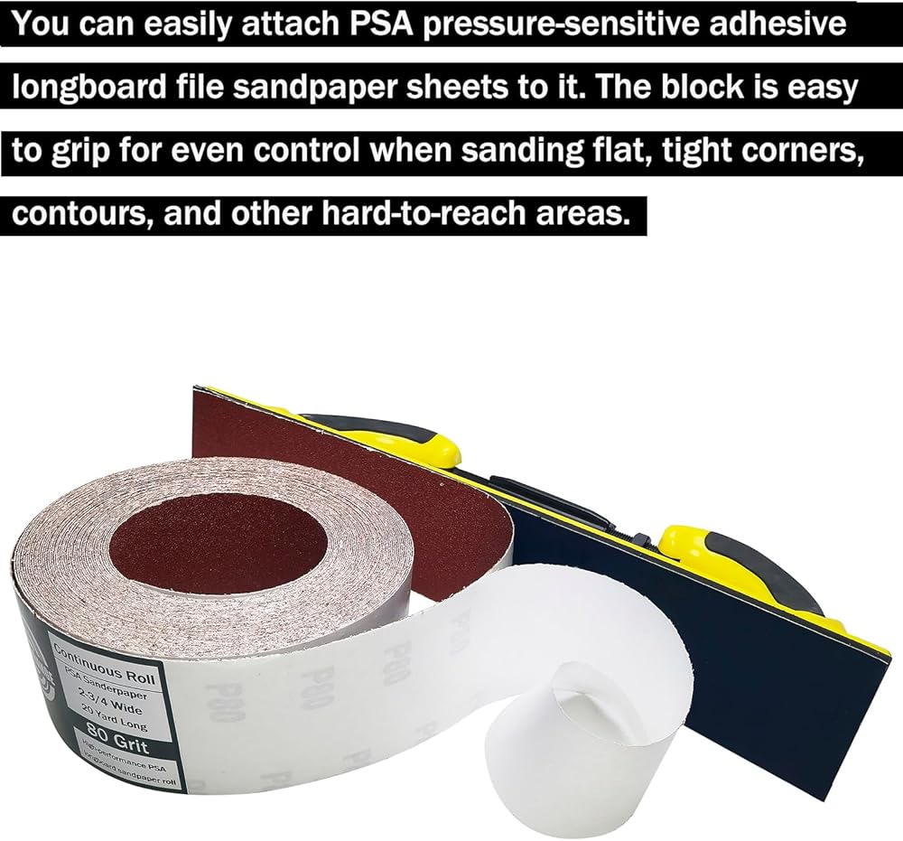 Toromp 2-3/4" x 15-3/4" Adjustable Radius Flex Longboard Hand Sanding File Block with PSA Backing Conversion Adapter Pad, Use Continuous Rolls or Sandpaper Sheets, Auto, Wood