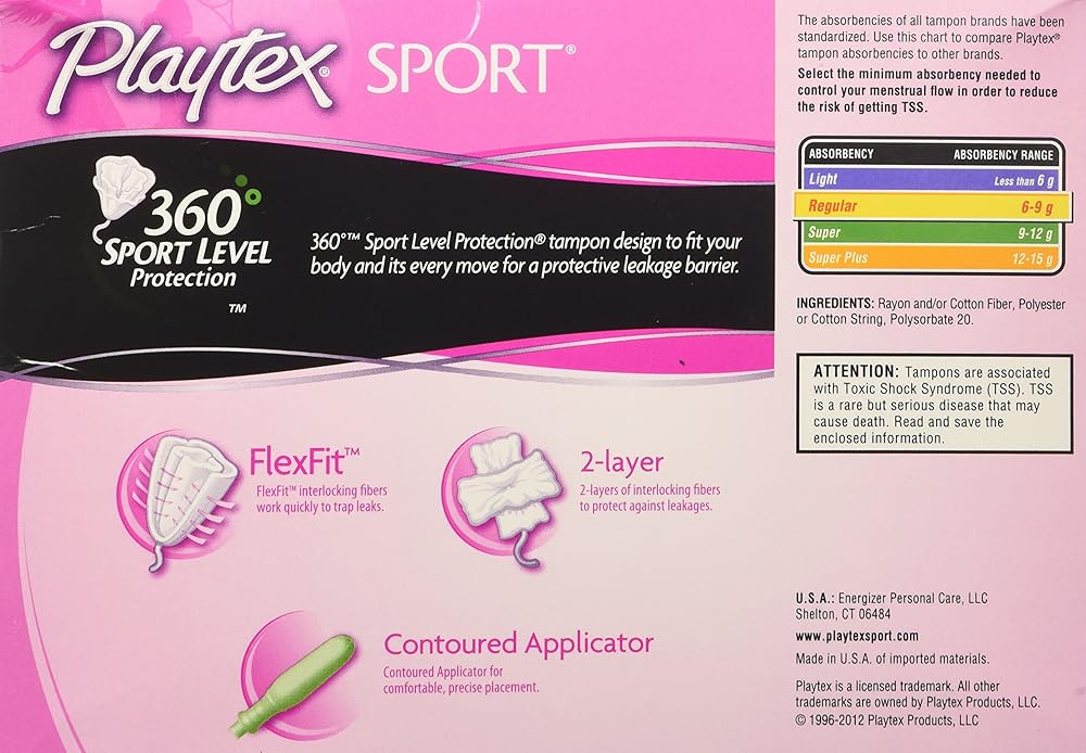 Playtex plastic tampons has two layers of interlocking fibers to protect against leakages, design to fit your body. Regular absorbency, protection for bodies in motion.