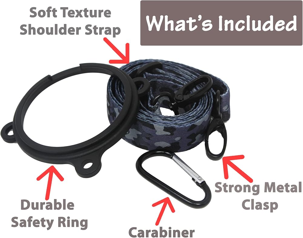 One MissionX Shoulder Strap/Sling Shoulder strap length: 34 inches adjustable to 60 inches. 1 inch width. ONLY Compatible with YETI RAMBLER WATER BOTTLES. Fits 64oz, 46oz, 36oz, 26oz, 18oz, 12oz. (NOT FOR TUMBLERS, MUGS) (Not for any other brands). Hands-Free shoulder strap are light weight and durable. It is easily to clip on and detachable for your bottle. It can attach to stroller, backpack, bike, just anything! They are great for JOGGING, HIKING, CAMPING, SCHOOL, GYM, OUTDOORS and MORE. Stay hydrated wherever you go! What's in the package: 1 Adjustable Strap/Sling(Machine washable, also can be wash with warm soapy water) 1 Redesigned Durable Secure Safety Ring 1 Carabiner Note: Bottle, Lid Not Included.