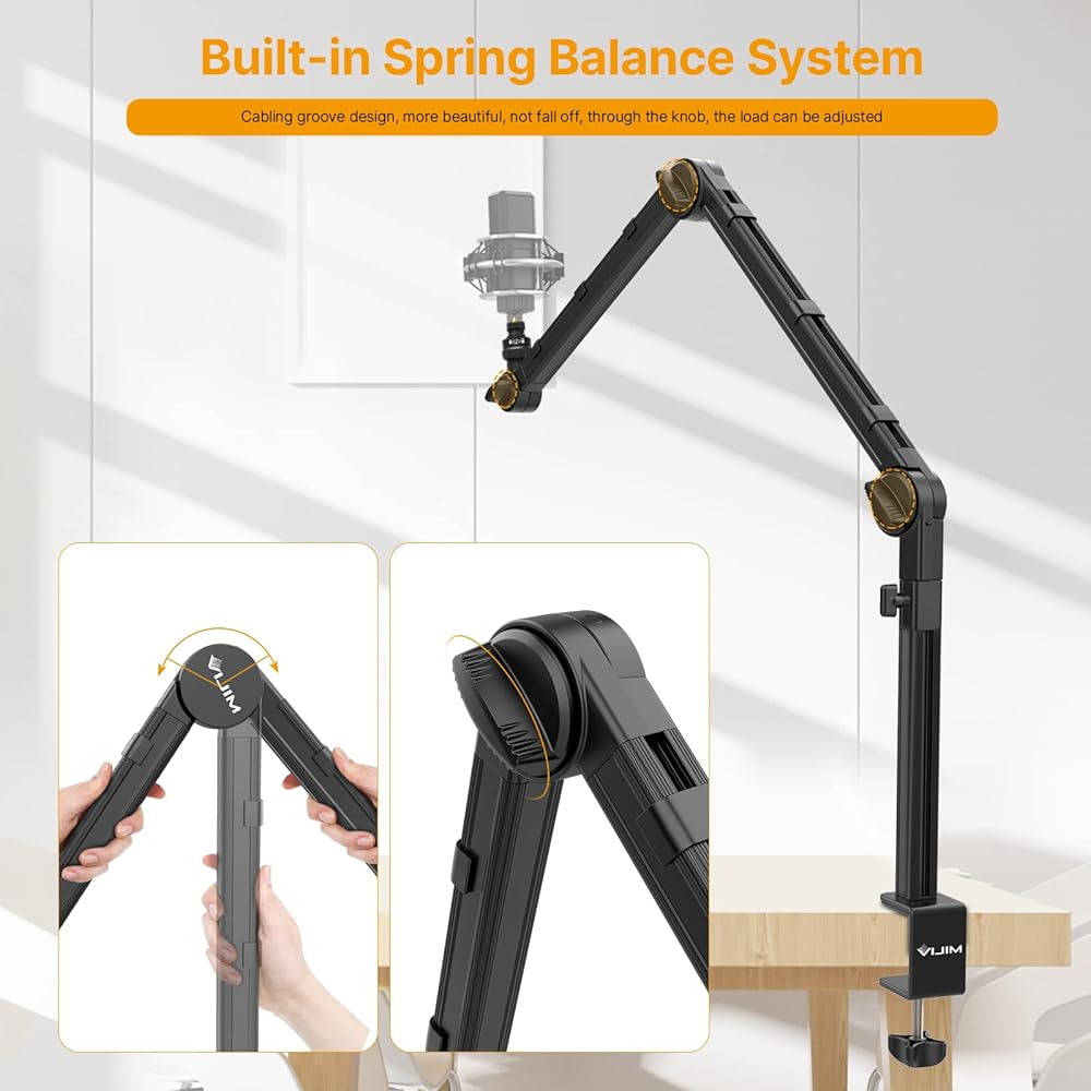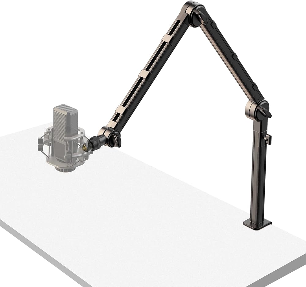 • قاعدة قوية ومتينة: تم تصميم حامل الميكروفون المكتبي هذا بقاعدة ثقيلة الوزن تتميز بحشية مطاطية في الأسفل