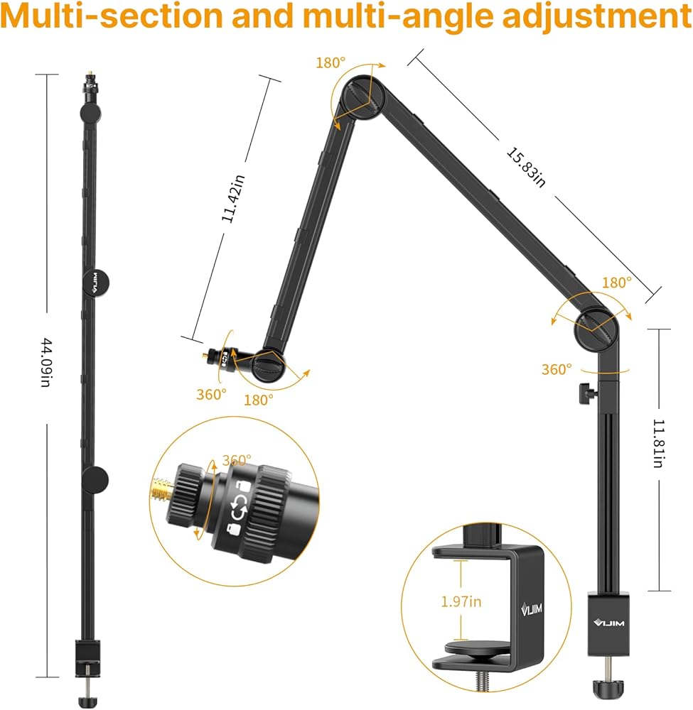 • الارتفاع قابل للتعديل: ارتفاع حامل الميكروفون عالي التحمل هذا قابل للتعديل من 12.4 بوصة إلى 16.9 بوصة مع قابض موثوق به 360 درجة، مما يسمح لك بوضعه على الارتفاع والزاوية الأمثل للحصول على أقصى قدر من الراحة أثناء الاستخدام