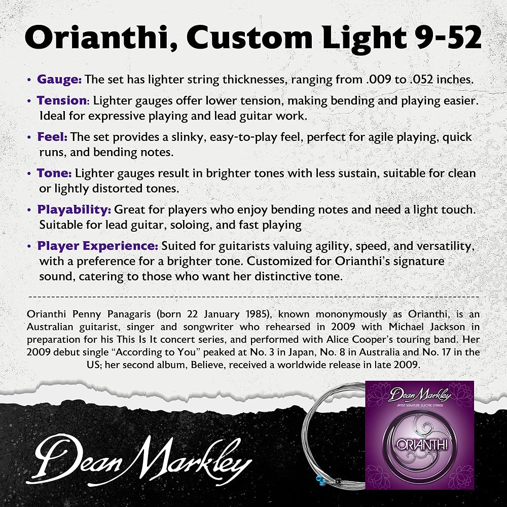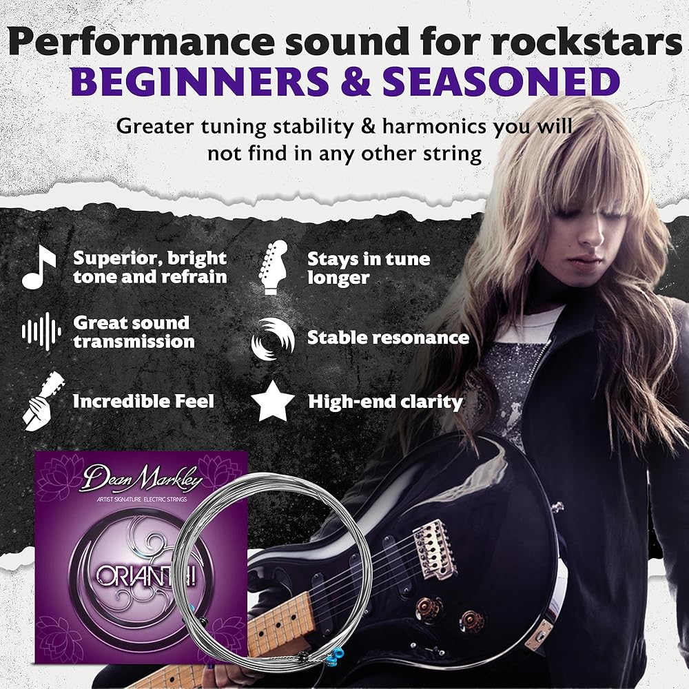 دين ماركلي سلاسل الغيتار الكهربائي سلسلة الفنان Orianthi 6 سلسلة مجموعة، 2554-OR مجموعة سلسلة الغيتار الكهربائي الصلب الأزرق، المعالجة بالتبريد لحياة أطول وصوت متفوق، صنع في الولايات المتحدة الأمريكية، قياس 9-52