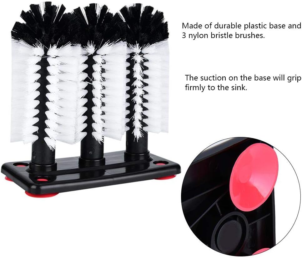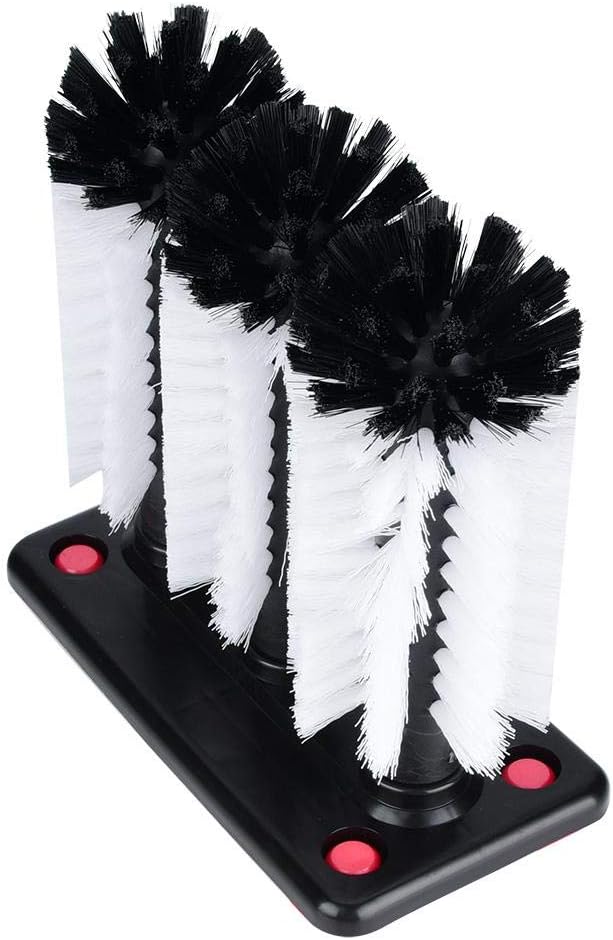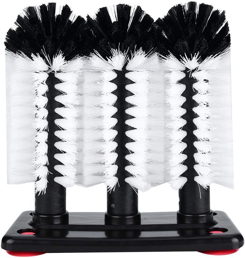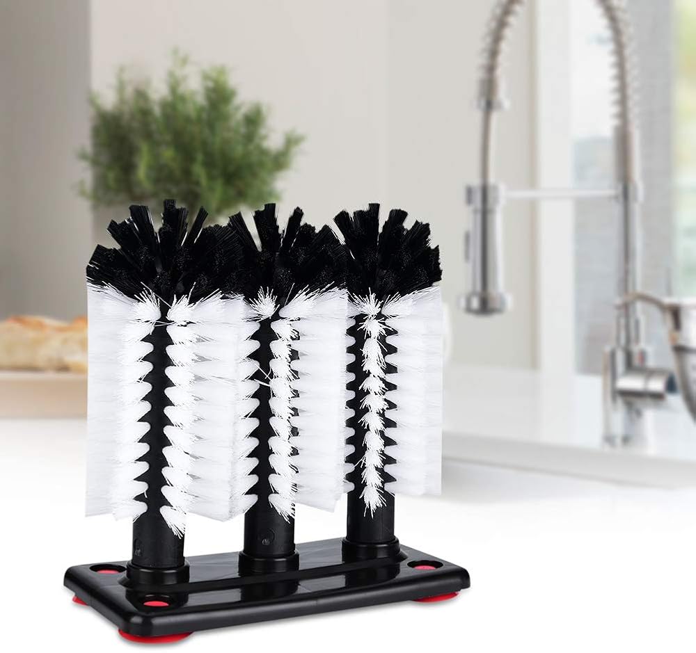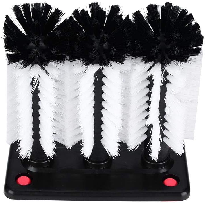It includes 3 brushes, the brush head swivel either direction to a point to ensure a good scrubbing of the bar glasses