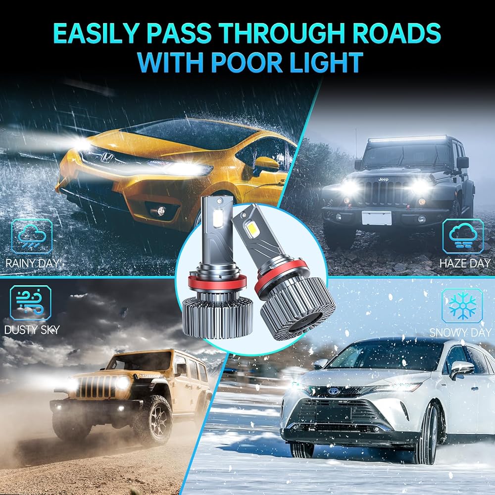 💡【Product Features】Adopting the latest upgraded 3570SMDLED high brightness light source chip design, the cold white chip is precisely surrounded, with 6500K cold white without shadows and dark spots. With a power of 85W, it produces 30000LM ultra-high brightness output, which is three times brighter than LED chip of the same size and 1000% brighter than H8/H9/H11 Halogen bulb. Even in adverse weather conditions, other vehicles can clearly see your light signal to protect your driving safety!