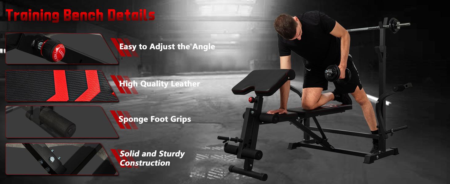 مقعد تمرين الكل في واحد - ليس مجرد مقعد رفع الأثقال، بل رف القرفصاء، ووسادة تجعيد الشعر، وجهاز تطوير الساق، ومعدات تمرين الصدر، لجميع احتياجاتك التدريبية. مثالي للمبتدئين والرافعين المتوسطين الذين يبحثون عن بناء القوة وتحسين اللياقة البدنية في المنزل.
