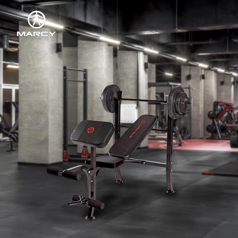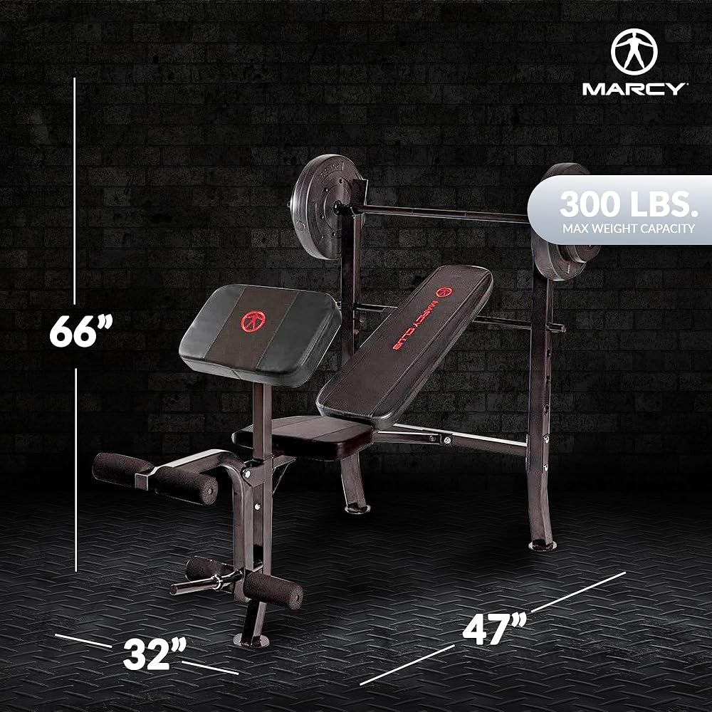 مارسي برو 14 مقياسًا من الفولاذ المتين القياسي وقابل للتعديل لتدريبات الضغط على مقاعد البدلاء مع مجموعة وزن 80 رطلاً لإعدادات الصالة الرياضية المنزلية، أسود