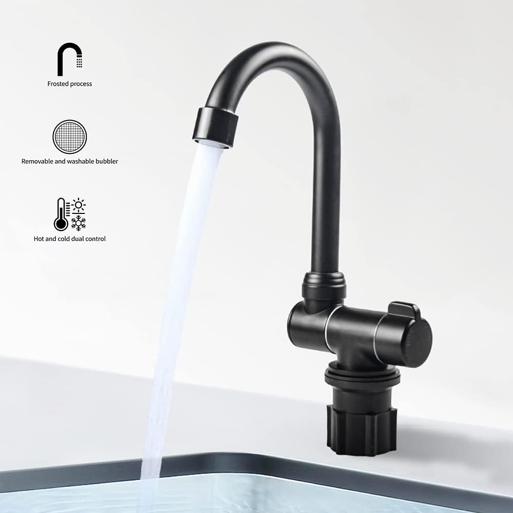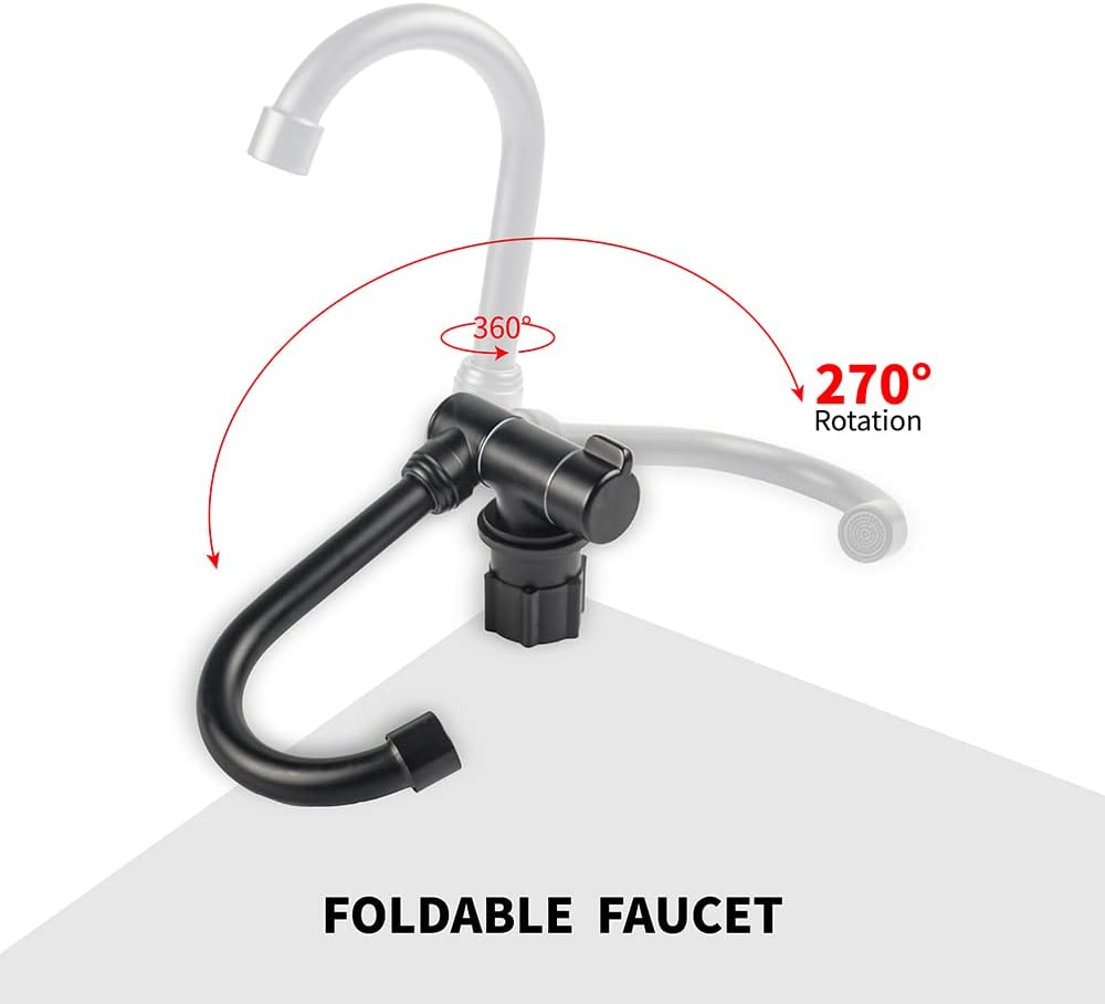 - صنبور قابل للطي موفر للمساحة جدًا. يمكن استخدامه في الكرافان، والمركب المنزلي، والتخييم، ومنضدة البار، والعديد من المساحات الصغيرة والضيقة الأخرى.