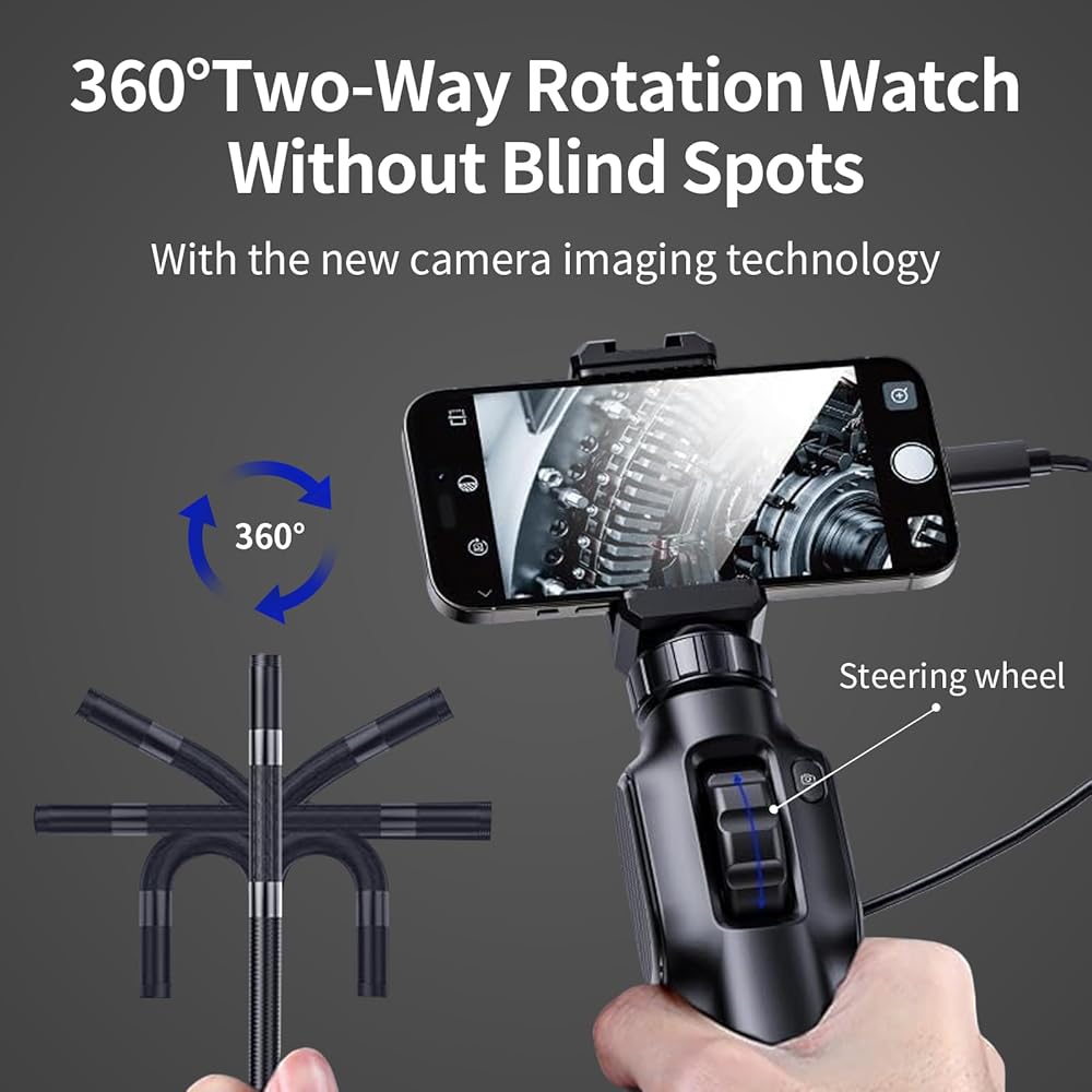 【 عدسة توجيه ثنائية الاتجاه 360 درجة】: أحدث ثورة في عمليات الفحص الخاصة بك بسهولة! بفضل القدرة على الدوران 360 درجة والانحناء للخلف 210 درجة دون عناء، فإن هذا المنظار هو الحل الأمثل للتنقل في المساحات الضيقة. التقط مقاطع فيديو وصور حية وواضحة وشاملة، ويتم بثها مباشرة إلى هاتفك المحمول في الوقت الفعلي عبر الكابل. الآن، استكشف أنظمة معقدة لم يسبق لها مثيل، وتمكن من الوصول بسهولة إلى المناطق التي كان يتعذر الوصول إليها في السابق.