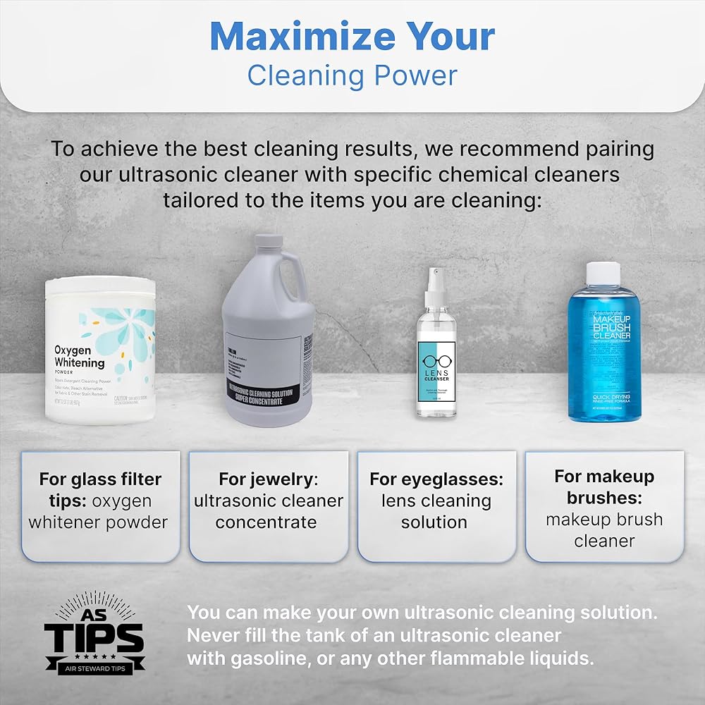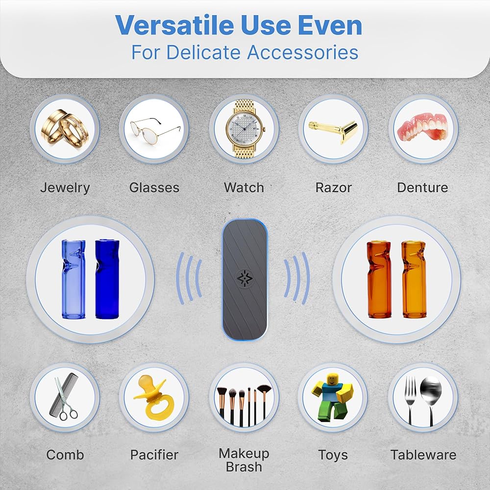 متعدد الاستخدامات - يمكن استخدام المنظف كمنظف للمجوهرات، ومنظف للساعات، ومنظف لأطقم الأسنان، ومنظف للنظارات، ومنظف للعملات المعدنية، ومنظف لأدوات المختبر، ومنظف لفرش المكياج، ومنظف لشفرات الحلاقة وأكثر من ذلك.