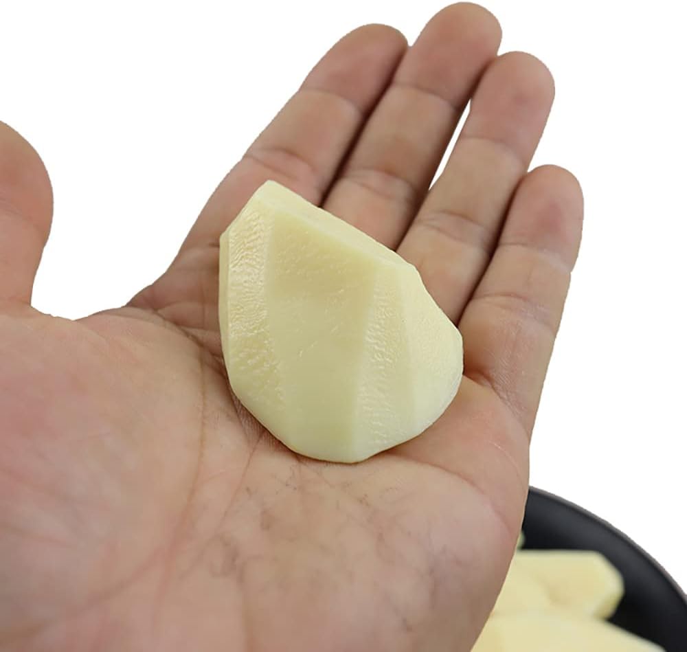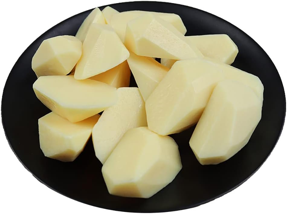 package: 6pcs Artificial potato very realistic shape. Miniature size:potato is about long approx2.16" (5.5cm) width approx1.45" (3.7cm). Weight: about 19g/pcHIGH QUAILTY: Made by soft plastic Real looking and lifelike . decoration which will not rot be out of shape and never fade. Can be reused! Can not be washed!!.MULTI FUNCTIONAL: Perfect for home kitchen dinning room decoration, Ideal for storefront adornment, flower arrangement, fruit plate, shop ,cabinet and sketch display, photography props and other home ornamentMay you have a happy shopping