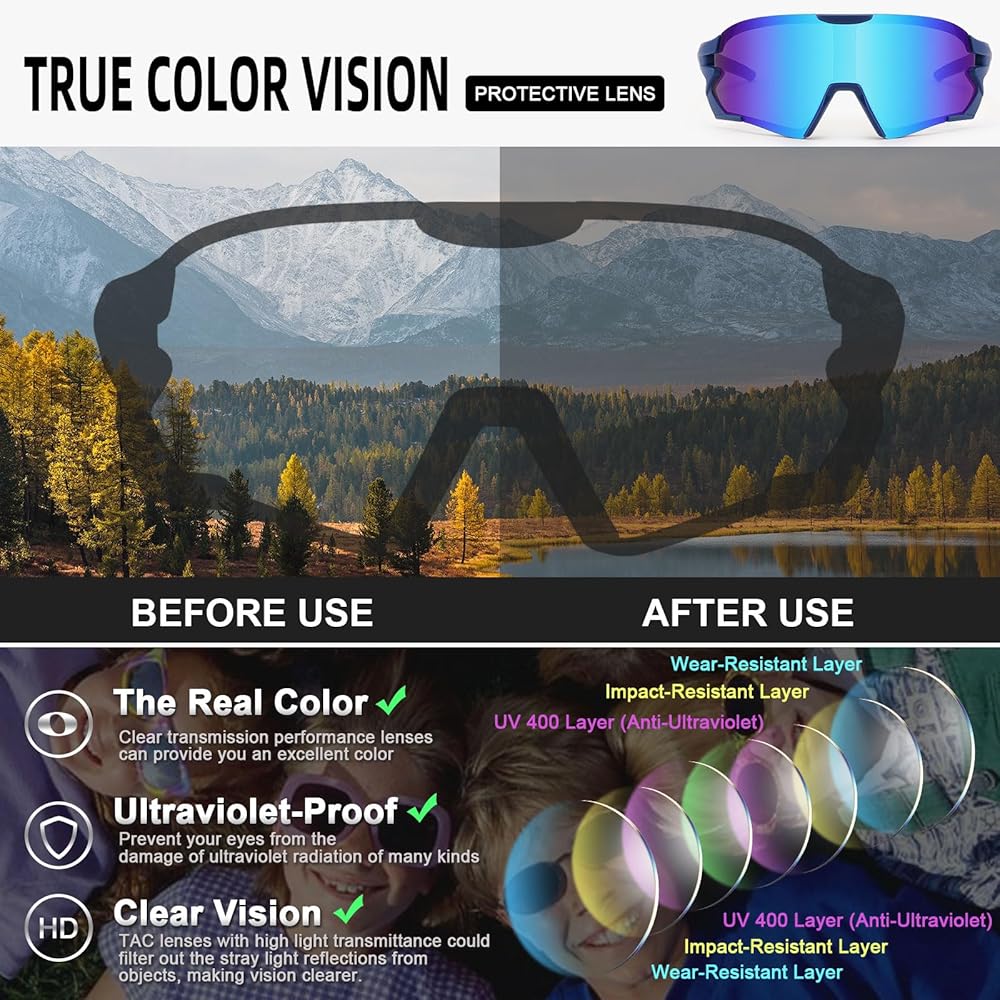 خيارات متعددة: تعمل الطلاءات الملونة عالية الوضوح على تعزيز الوضوح البصري والواقعية. مع مجموعة متنوعة من الألوان للاختيار من بينها، يمكنك مطابقة ذوقك بسهولة. هذه النظارات الشمسية مناسبة للشباب والمراهقين والأطفال، مما يجعلها مثالية لركوب الدراجات والمشي لمسافات طويلة وصيد الأسماك وركوب القوارب والجري والمشي لمسافات طويلة والسفر.