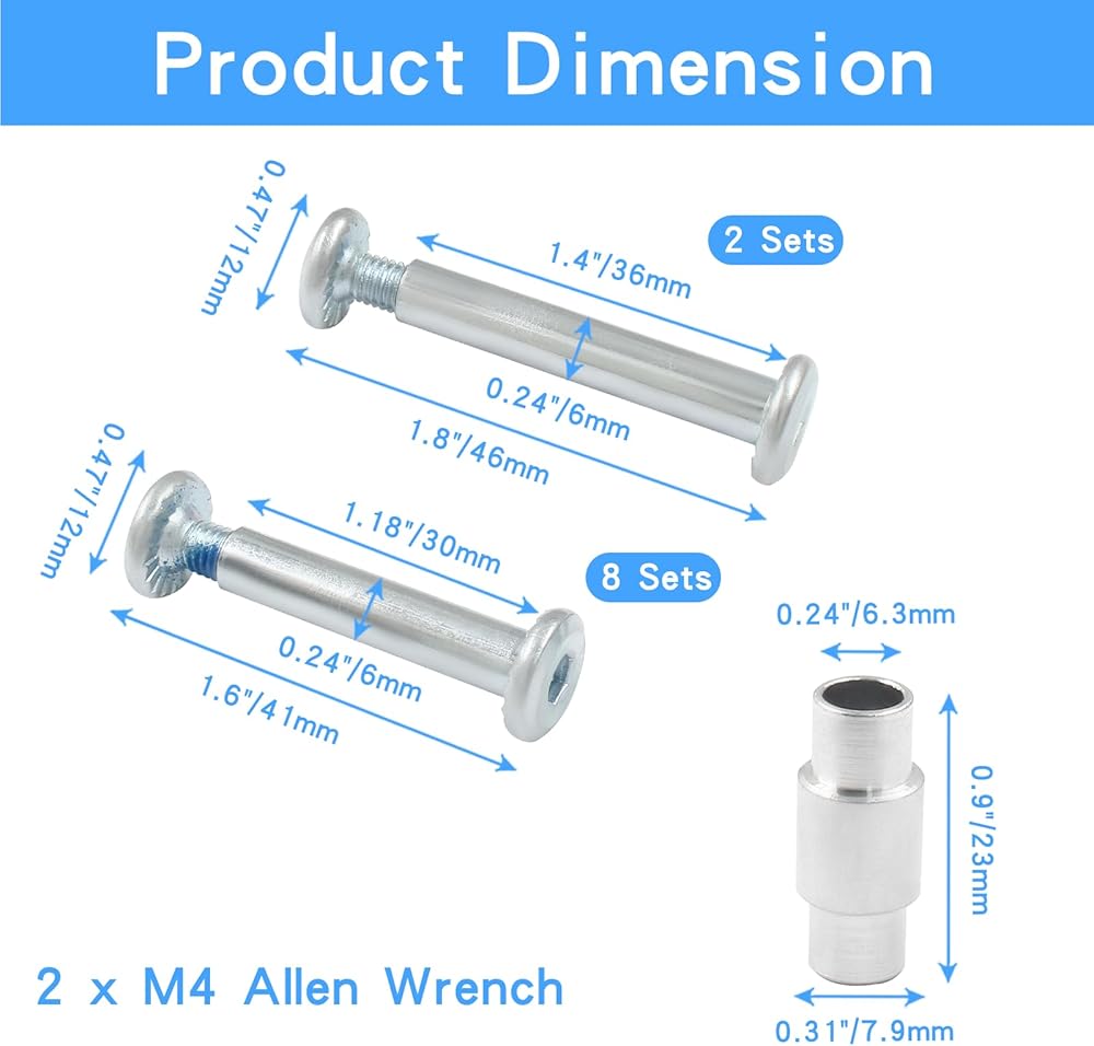 Package Included: Set of 1, 8 x Axle Screw Sets, 2 x Long Axle Screw Sets, 8 x Long-Sleeved Bearing Spacers, 2 x M4 Allen Wrench for Installation. Please confirm the size in product image.