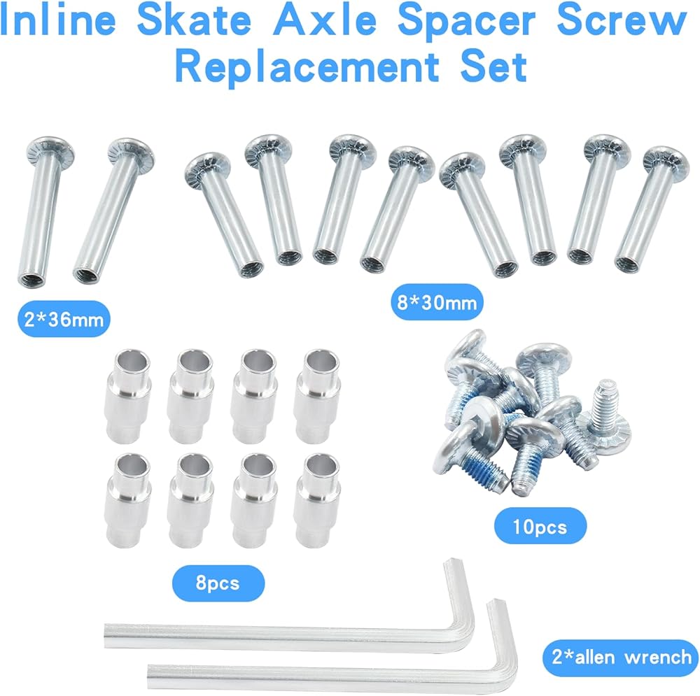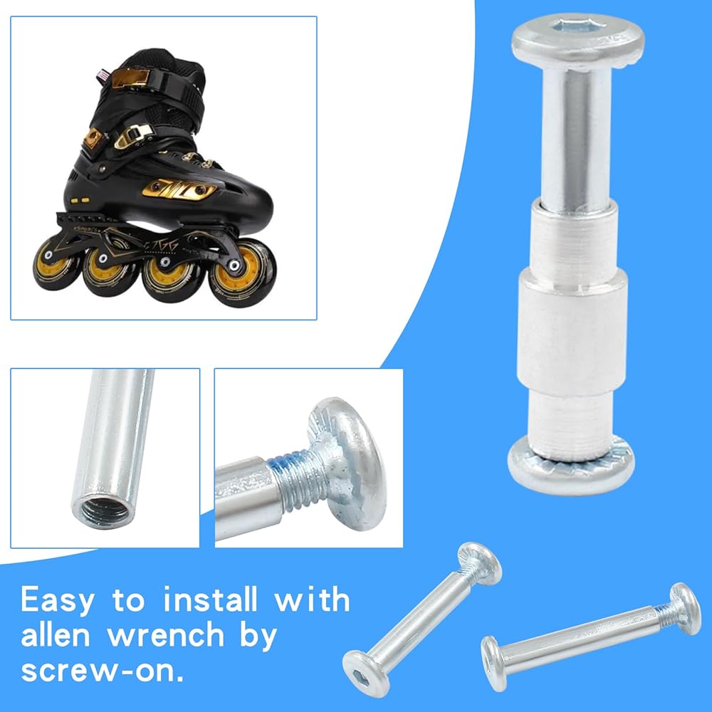 Inline skate wheel socket screw and axles for roller skates, skates wheels fixing quickly and easily. Solid and durable skate wheel socket screws provide smoothly rolling experience. Effective and convenient to solve the problem and fix the inline skating and roller skating wheels easily.