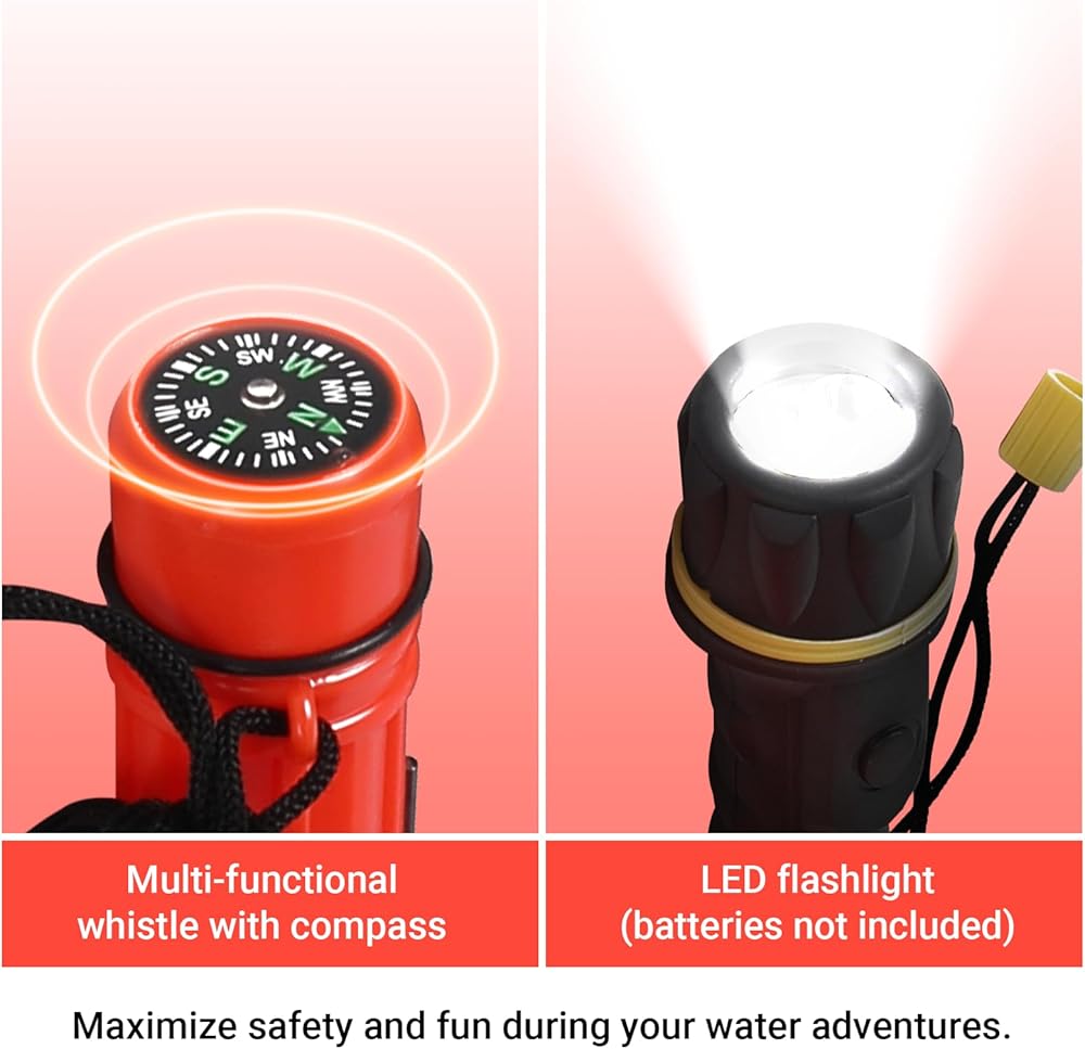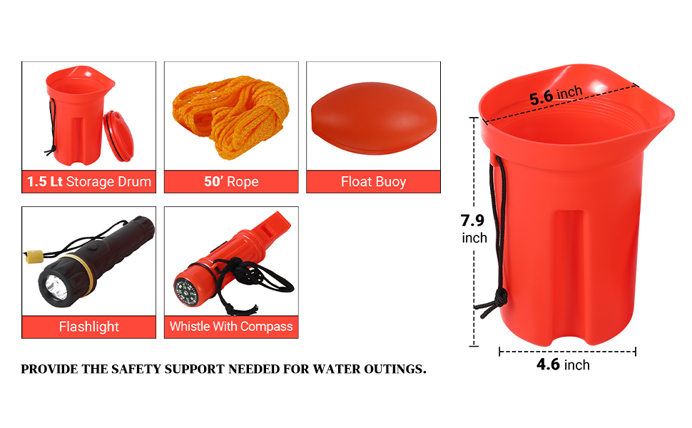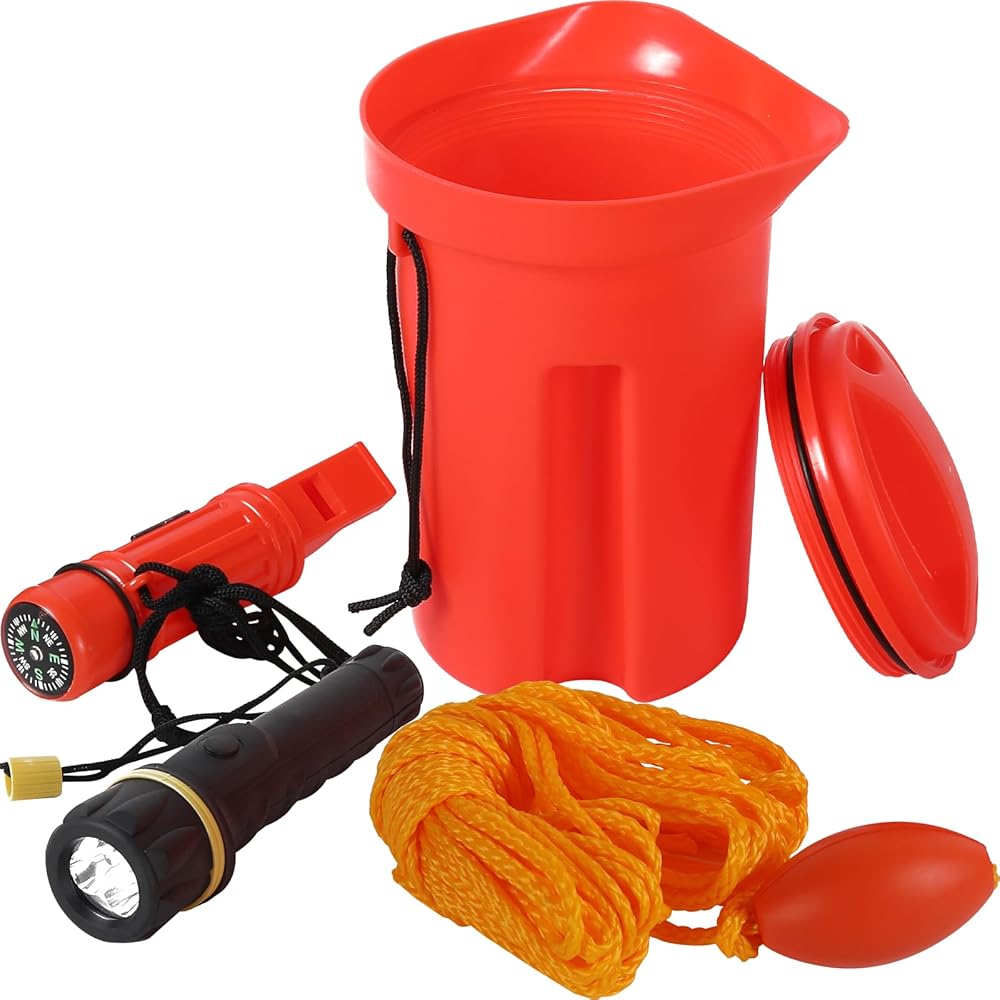 - معدات السلامة الأساسية متضمنة: تأتي كل مجموعة كاملة مع حبل متين بطول 50 قدمًا، وعوامة عائمة موثوقة، وصفارة متعددة الوظائف مع بوصلة، ومصباح يدوي LED (البطاريات غير متضمنة) لتغطية جميع القواعد في حالات الطوارئ.