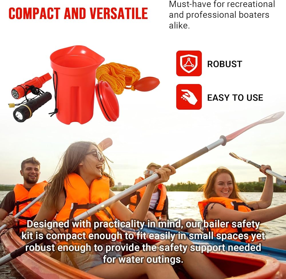 - مدمجة ومتعددة الاستخدامات: تم تصميم مجموعة أدوات السلامة الخاصة بنا مع وضع التطبيق العملي في الاعتبار، وهي مدمجة بما يكفي لتناسب المساحات الصغيرة بسهولة ولكنها قوية بما يكفي لتوفير دعم السلامة اللازم للنزهات المائية. لا غنى عنه لراكبي القوارب الترفيهية والمحترفين على حد سواء.