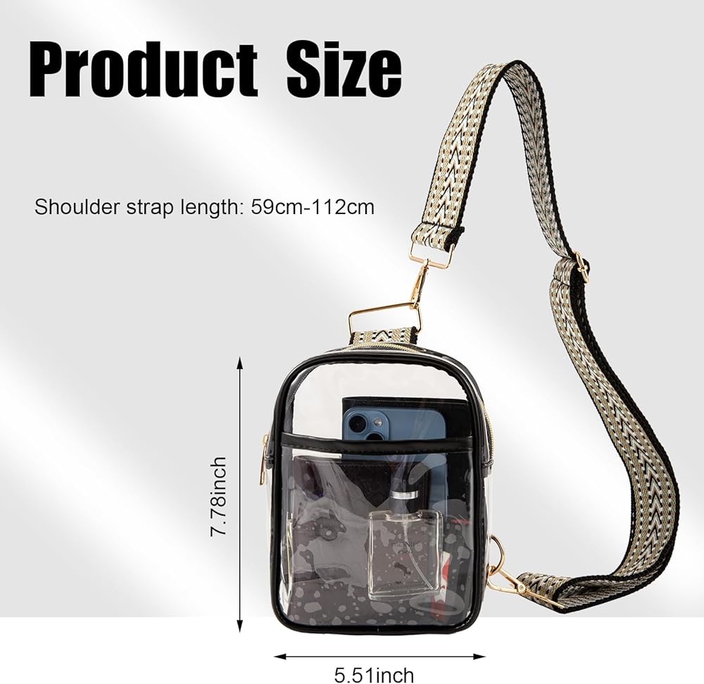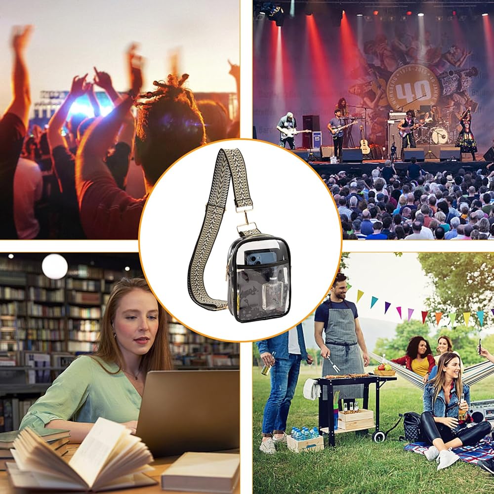 【Clear Bag Stadium Approved】Clear crossbody bag stadium approved can get through security easily and quickly, so this clear stadium bags for women is great for concerts, music festivals and sporting events.