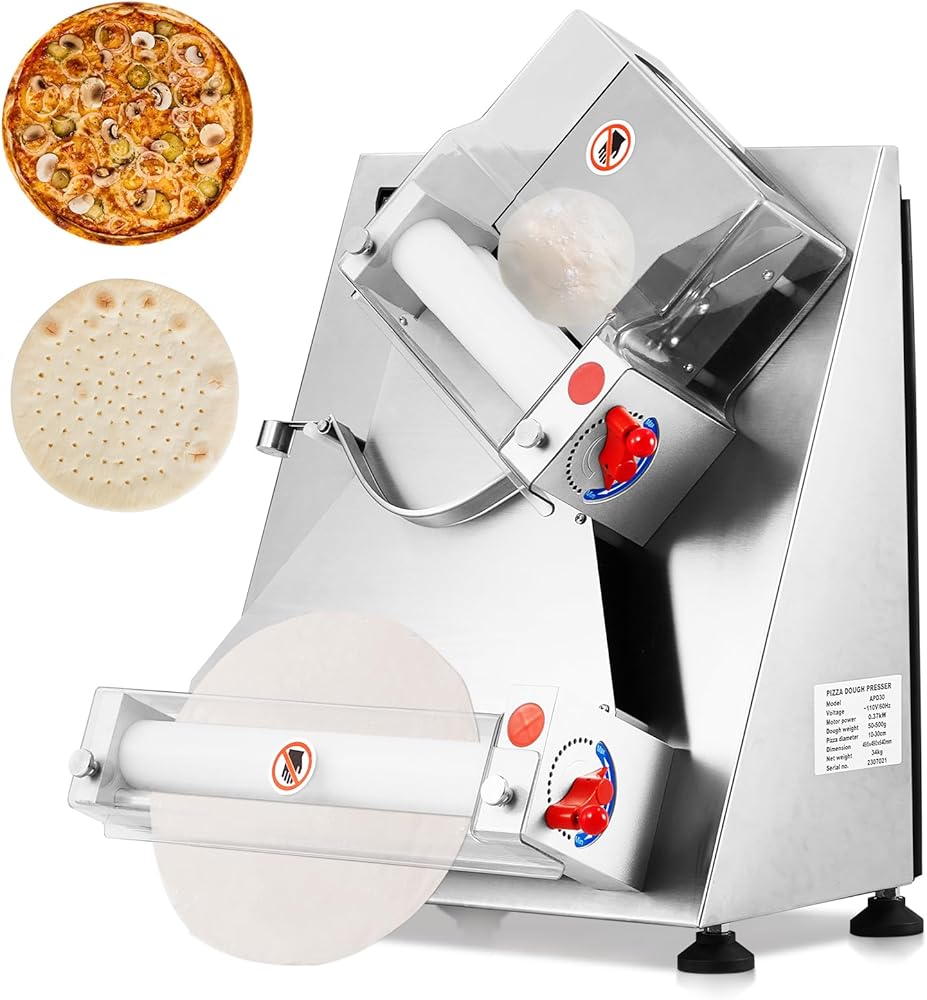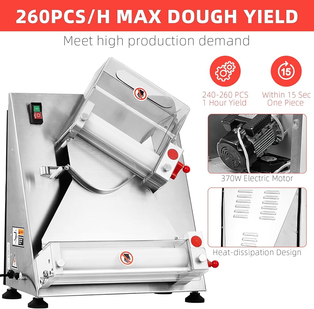 ماكينة لف عجين البيتزا الأوتوماتيكية بقدرة 370 وات: آلة لف عجين البيتزا هذه تتبنى تصميمًا أوتوماتيكيًا بالكامل. ما عليك سوى وضع العجينة في المدخل، ويتم ضغط العجينة تلقائيًا في دائرة منتظمة. العملية برمتها موحدة وفعالة