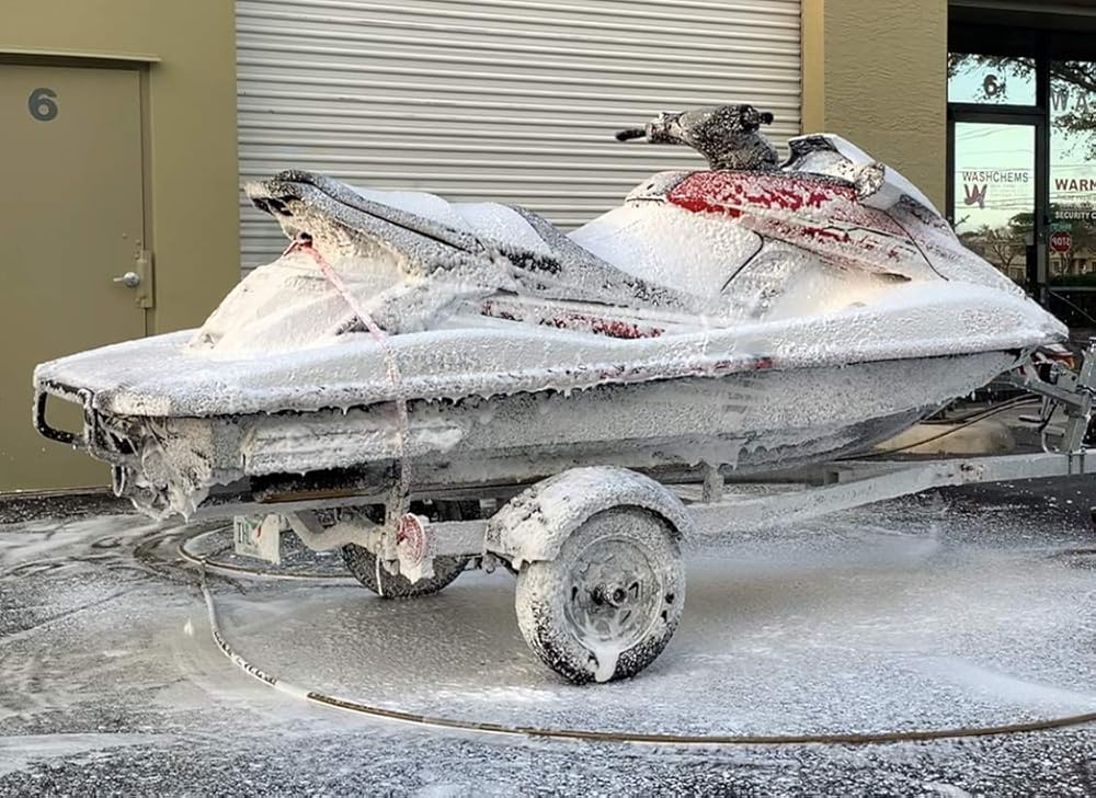 Effortless Cleaning: Easily mix in water, spray the foam on your boat or jet ski, rinse, and you're done! It dissolves and emulsifies any type of dirt.