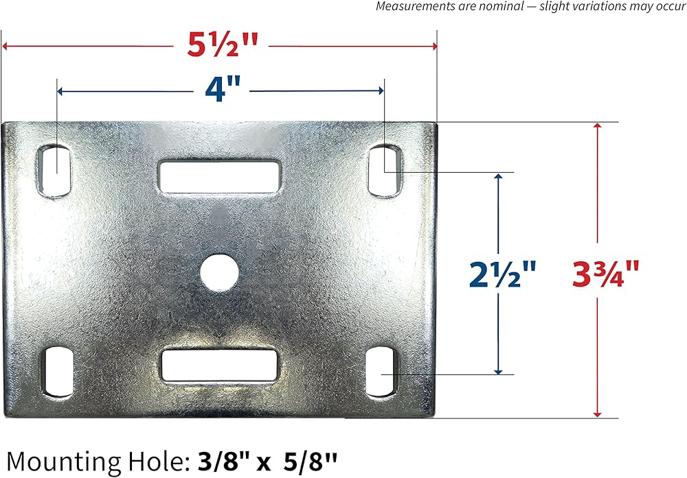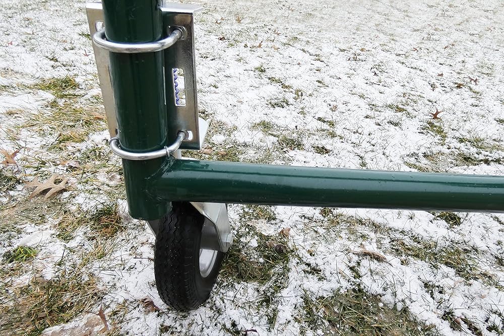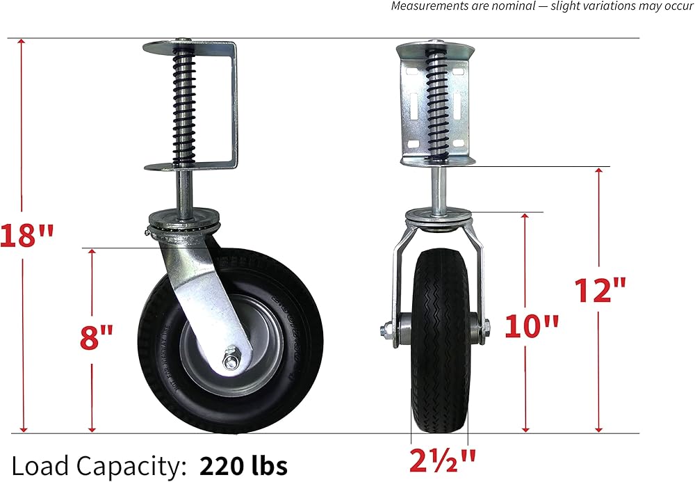 Includes 1 heavy duty flat free gate caster, 2 U-bolts, washers, and nuts