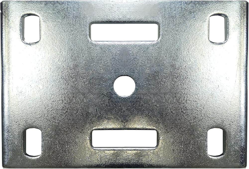 Heavy duty universal mounting plate with 7 holes to easily attach to wooden gates or along horizontal or vertical rails of a tubular farm gate using the included hardware