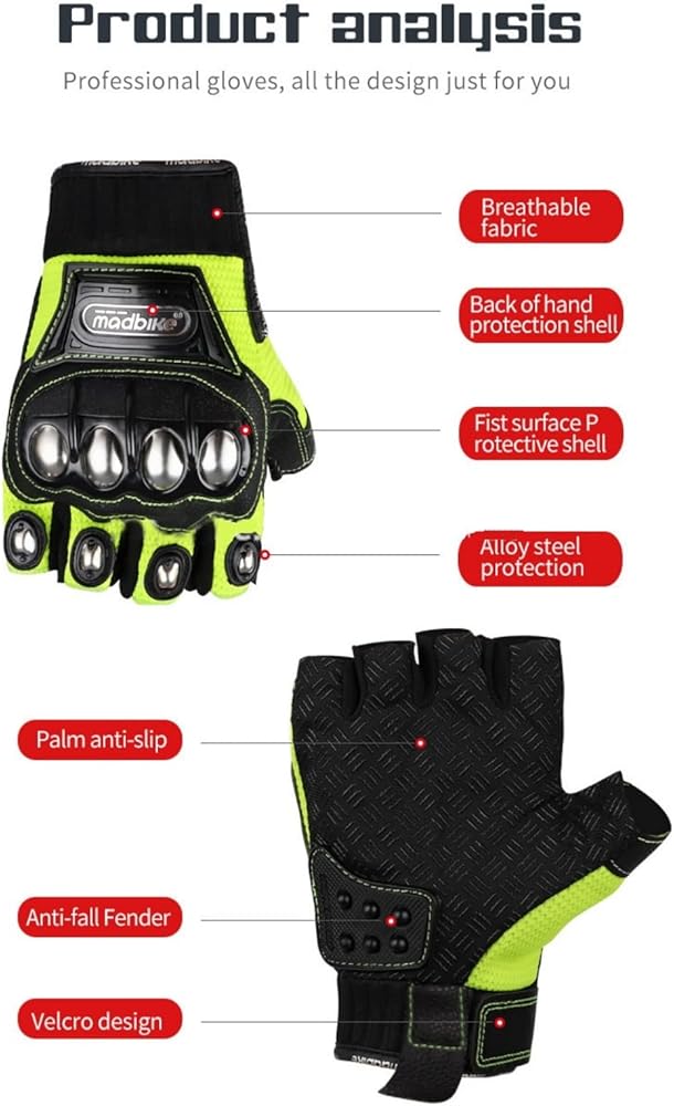 3. Breathable & Comfortable: Our Half Finger powersports Gloves are made of breathable polyester with the breathable hole on the palm, durable and comfortable, offers a soft and comfortable feeling, suitable for all seasons.