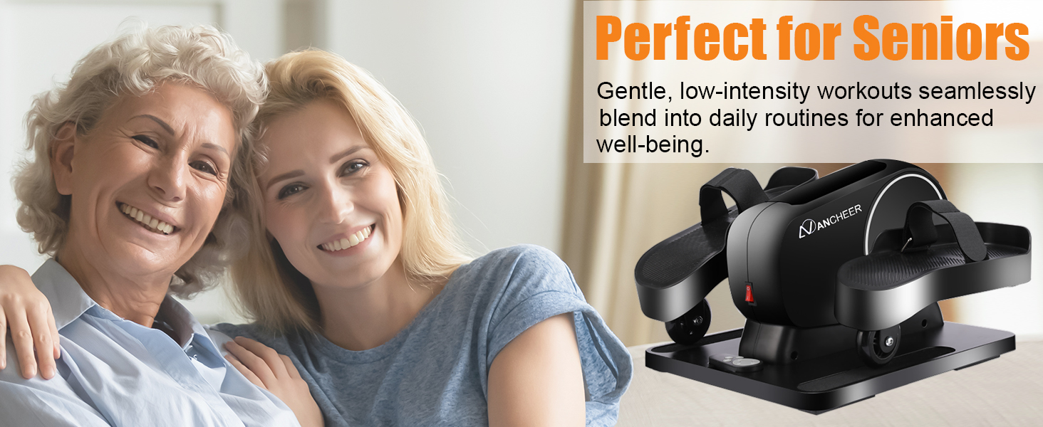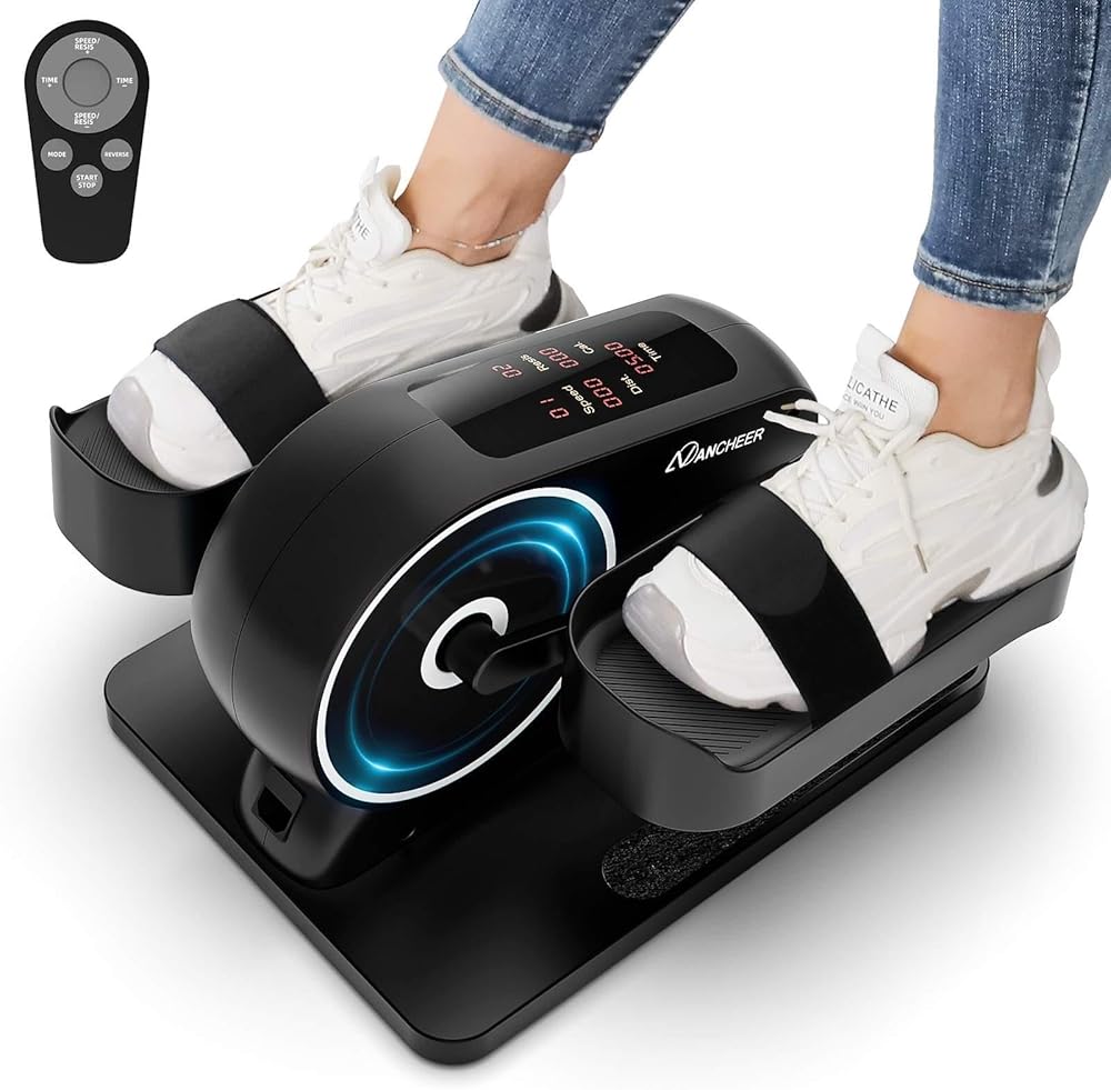 ANCHEER تحت المكتب، جهاز تمرين الساق البيضاوي الكهربائي أثناء الجلوس لكبار السن، جهاز تمرين دواسة القدم بمحرك آلي/يدوي مزدوج الوضع مع جهاز تحكم عن بعد للاستخدام في المنزل والمكتب