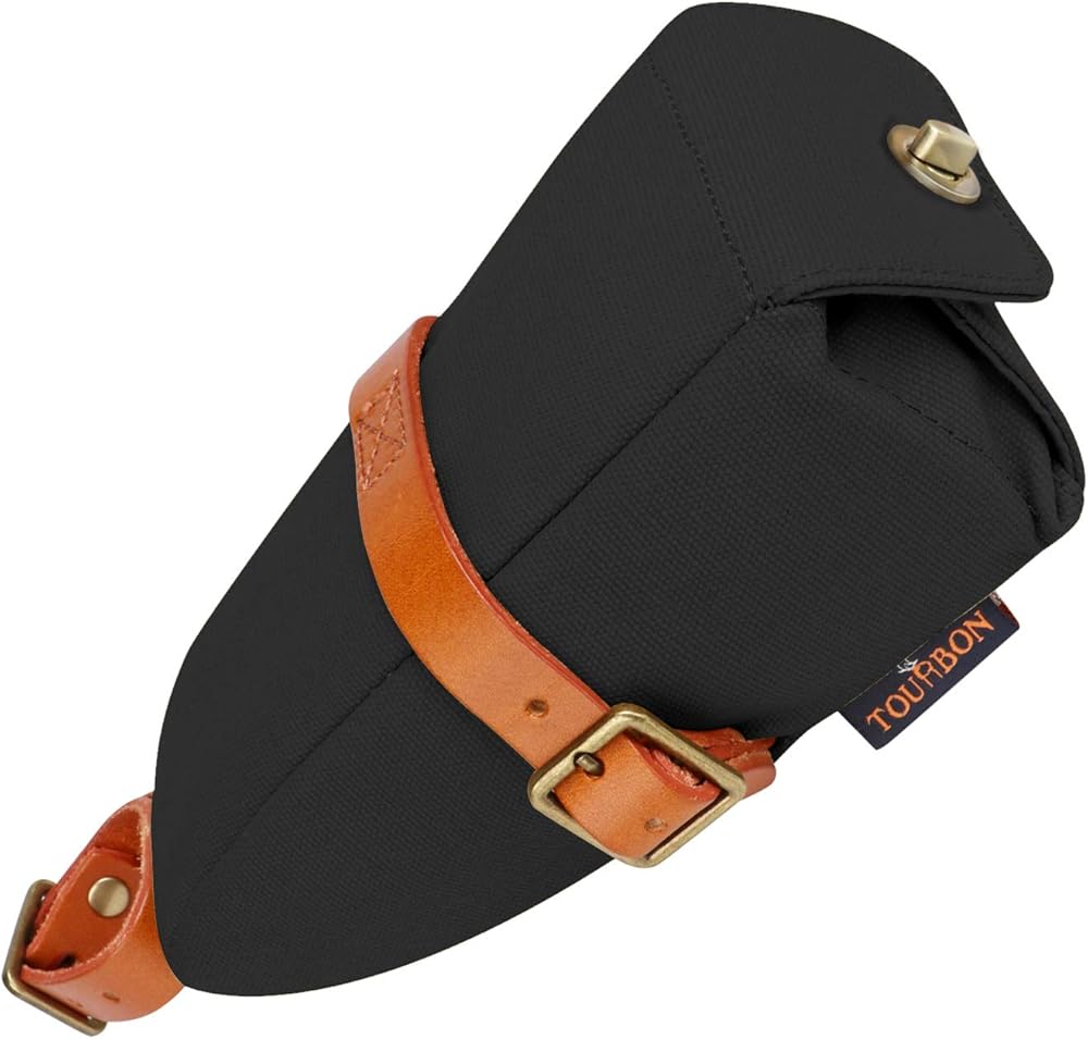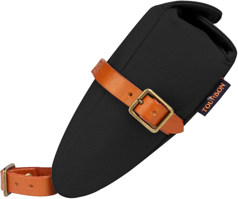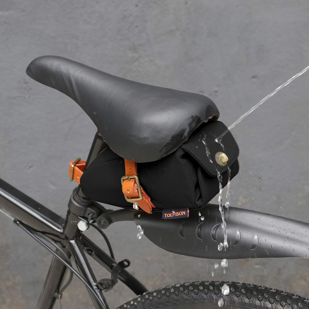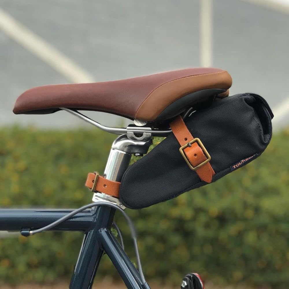 Three adjustable leather straps attach to saddle and seatpost in seconds and hold bag firmly in place.