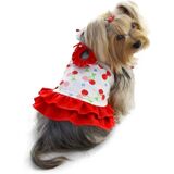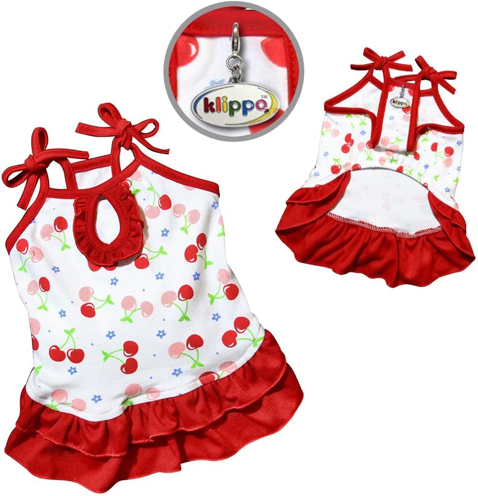 Adorable and juicy watermelon sundress with attached large D-ring for easy leash attachment! Accented with hot pink ribbon with white polka dots on the shoulder straps and a matching bow on the back. A small D-Ring attached near the neck area to add on a "Klippo" charm or ID tag! (Each outfit comes in its own Klippo logo charm.) (Size XS fits: Neck 6"~7.5"; Chest 10"~12"; Back Length 6"~8" / Size S fits: Neck 7.5"~9"; Chest 12"~14"; Back Length 8"~10" / Size M fits: Neck 9"~11"; Chest 14"~16.5"; Back Length 10"~12" / Size L fits: Neck 11"~13"; Chest 16.5"~18.5"; Back Length 12"~14" / Size XL fits: Neck 13"~15"; Chest 18.5"~22"; Back Length 14"~16")