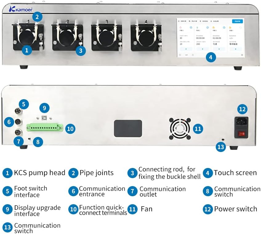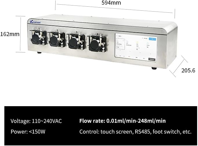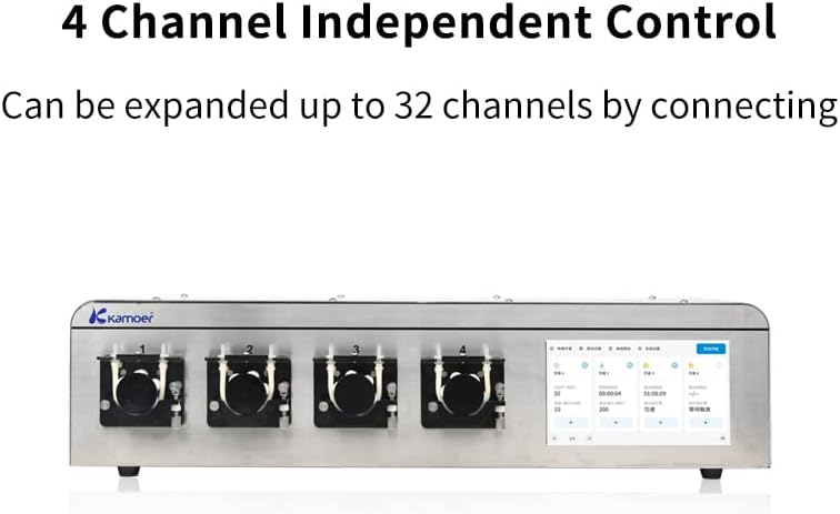 AC110V-240V 4 قناة مضخة تمعجية منخفضة التدفق 0.01 مل / دقيقة - 248 مل / دقيقة كاموير NP04-KCS عالية الدقة للبرمجة محرك متدرج مضخة الجرعات السائلة مع شاشة تعمل باللمس التطبيق واي فاي التحكم عن بعد