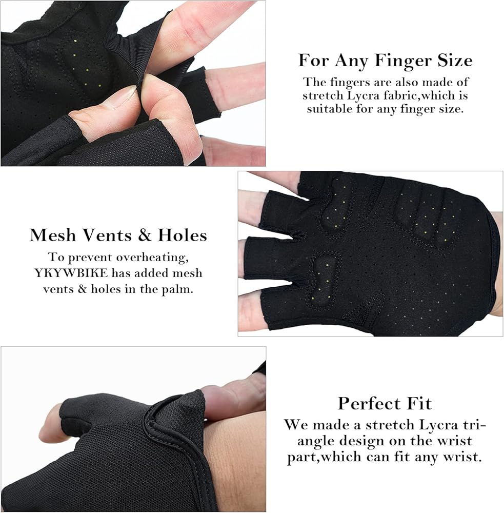 ظهر شبكي للتهوية: الجزء الخلفي من قفازات الدراجة هذه مصنوع من نسيج شبكي مسامي يمتص الرطوبة في 4 اتجاهات ويحافظ على يديك جيدة التهوية ومنتعشة. لمنع ارتفاع درجة الحرارة، أضافت YKYWBIKE فتحات وفتحات شبكية في راحة اليد.