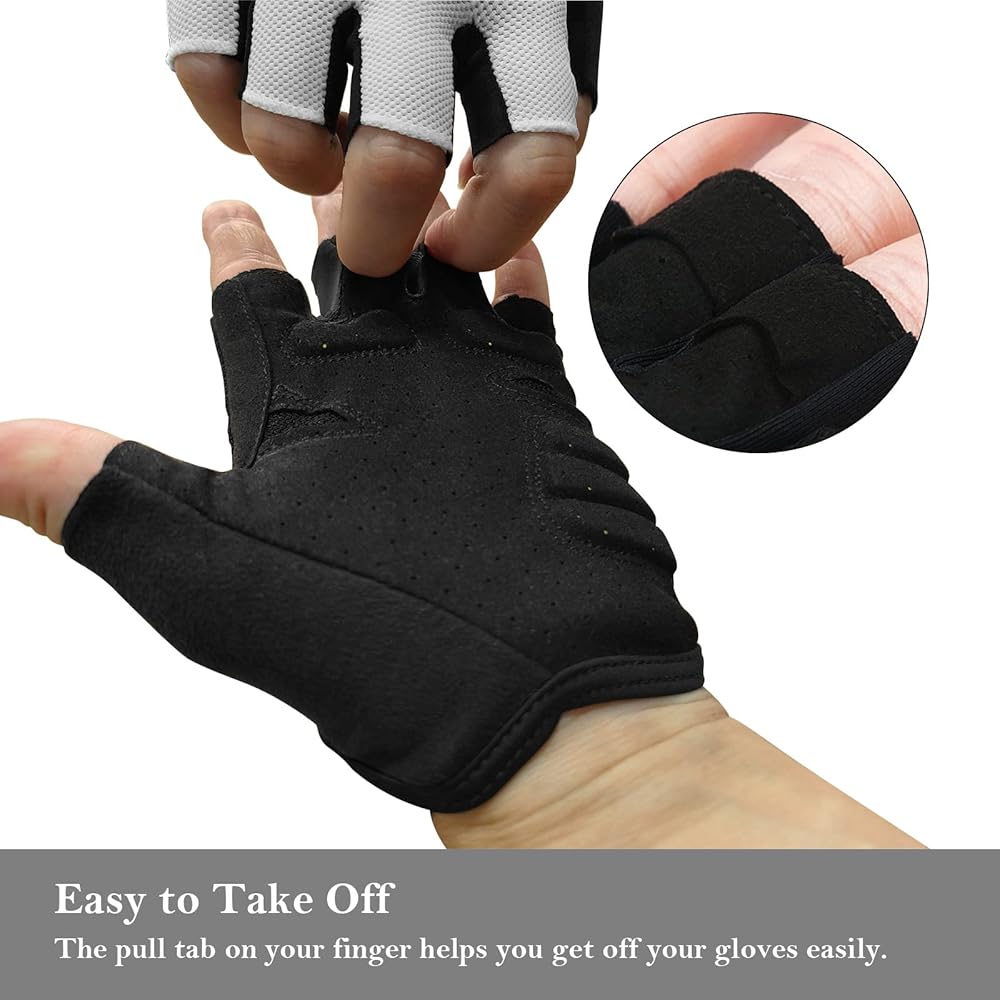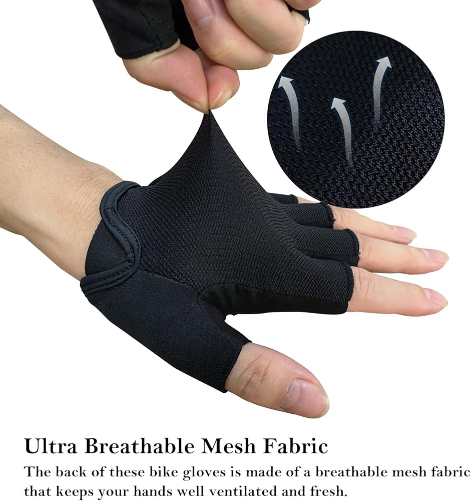 قفازات نصف إصبع للمرونة: تتميز القفازات الرياضية بتصميم نصف إصبع، والذي لا يسمح فقط للأصابع بالتحرك في نطاق كامل. يمكن للمستخدم تحريك اليد بمرونة أثناء ركوب الدراجات أو الأنشطة الرياضية.