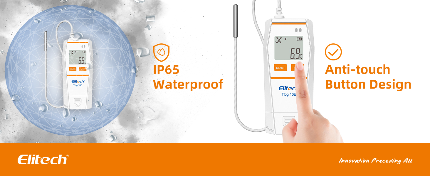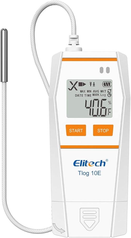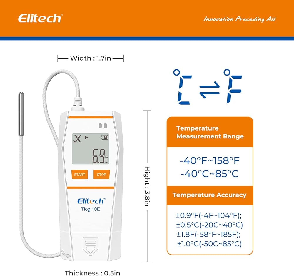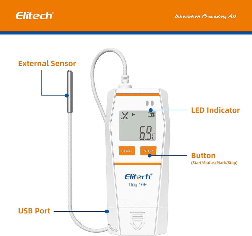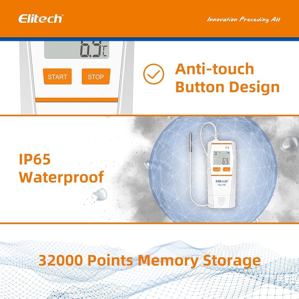 Elitech Tlog 10E مسجل بيانات درجة الحرارة الرقمي مسجل درجة الحرارة القابل لإعادة الاستخدام PDF تقرير منفذ USB 32000 نقطة