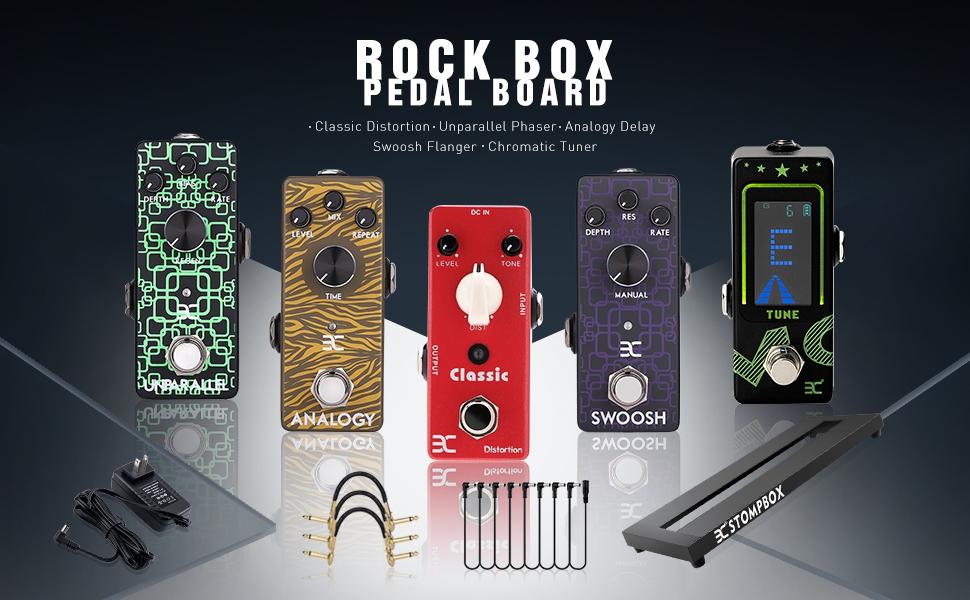 🎸 معبأة في صندوق مصبوب صغير الحجم. وشملت الموصلات الإدخال والإخراج ومحول التيار المتردد. يتيح الشكل الصغير القوي للدواسة أن تتناسب بشكل مريح مع أي لوحة دواسات.