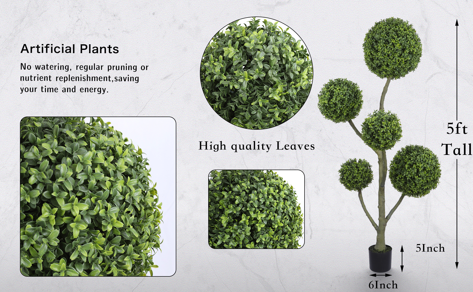 • 【سهلة العناية】: شجرة الكرة الموضعية من خشب البقس الاصطناعي لا تتطلب سقاية يدوية أو صيانة يومية. شجرة الكرة توبياري الطويلة المزيفة من خشب البقس ستحافظ على طولها ولونها وشكلها لسنوات. إنها خيار هدية مثالي للأشخاص الذين ليس لديهم خبرة ولا وقت للعناية بالنباتات.