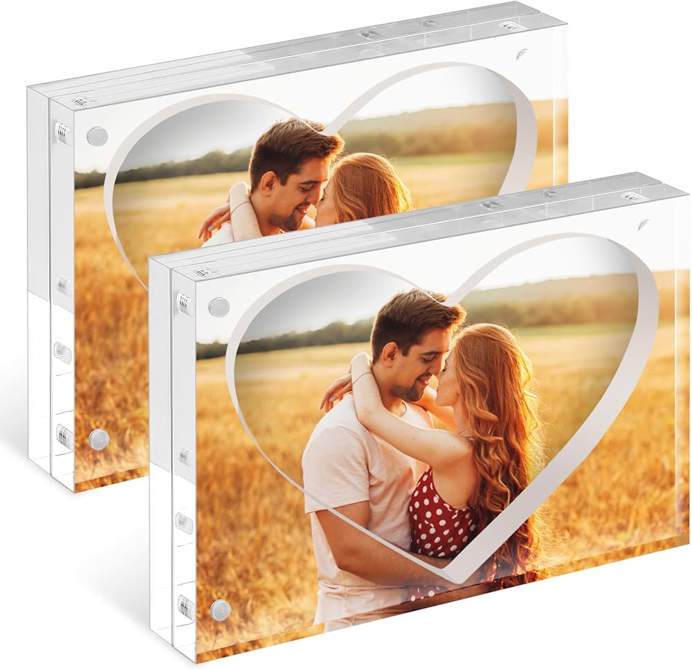 إطارات صور أكريليك TWING مقاس 5x7 مكونة من قطعتين إطار صورة شفاف مغناطيس أفقي مزدوج الجوانب، إطارات أكريليك سميكة بنسبة 20% مع قماش من الألياف الدقيقة، إطار صورة على شكل قلب هدايا عيد الأم للأم