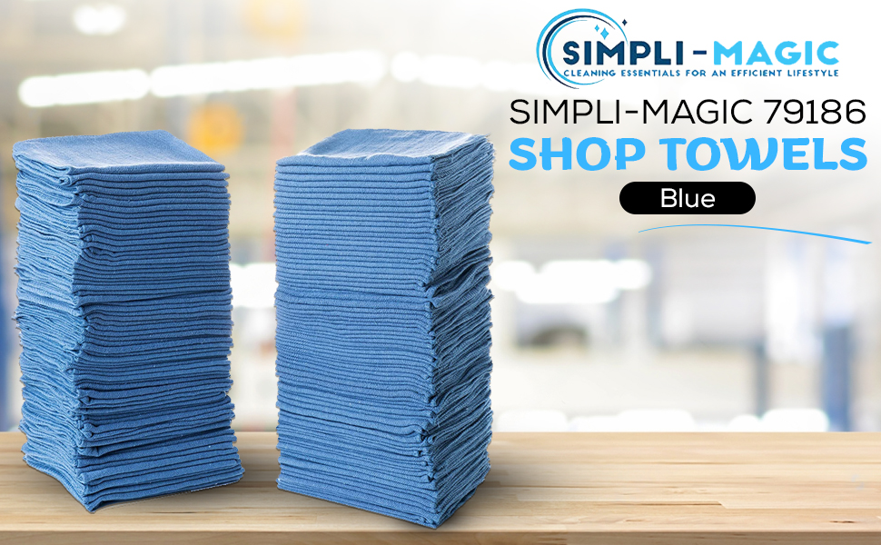 Simpli-Magic Premium Shop Towels 14”x12”, Commercial Grade Blue, 100 Pack