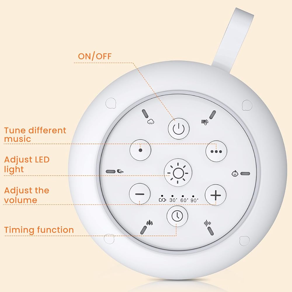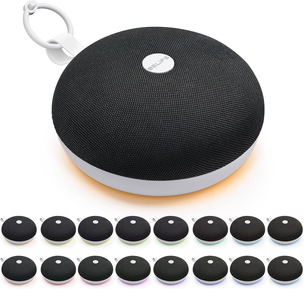 • [16 لون إضاءة ليلية] آلة صوت مع 16 نوعًا من الألوان الفاتحة، لتناسب تفضيلاتك الشخصية في أي وقت. يمكنك اختيار الإضاءة الليلية المناسبة لتزيين البيئة وخلق الجو المثالي للنوم والراحة.