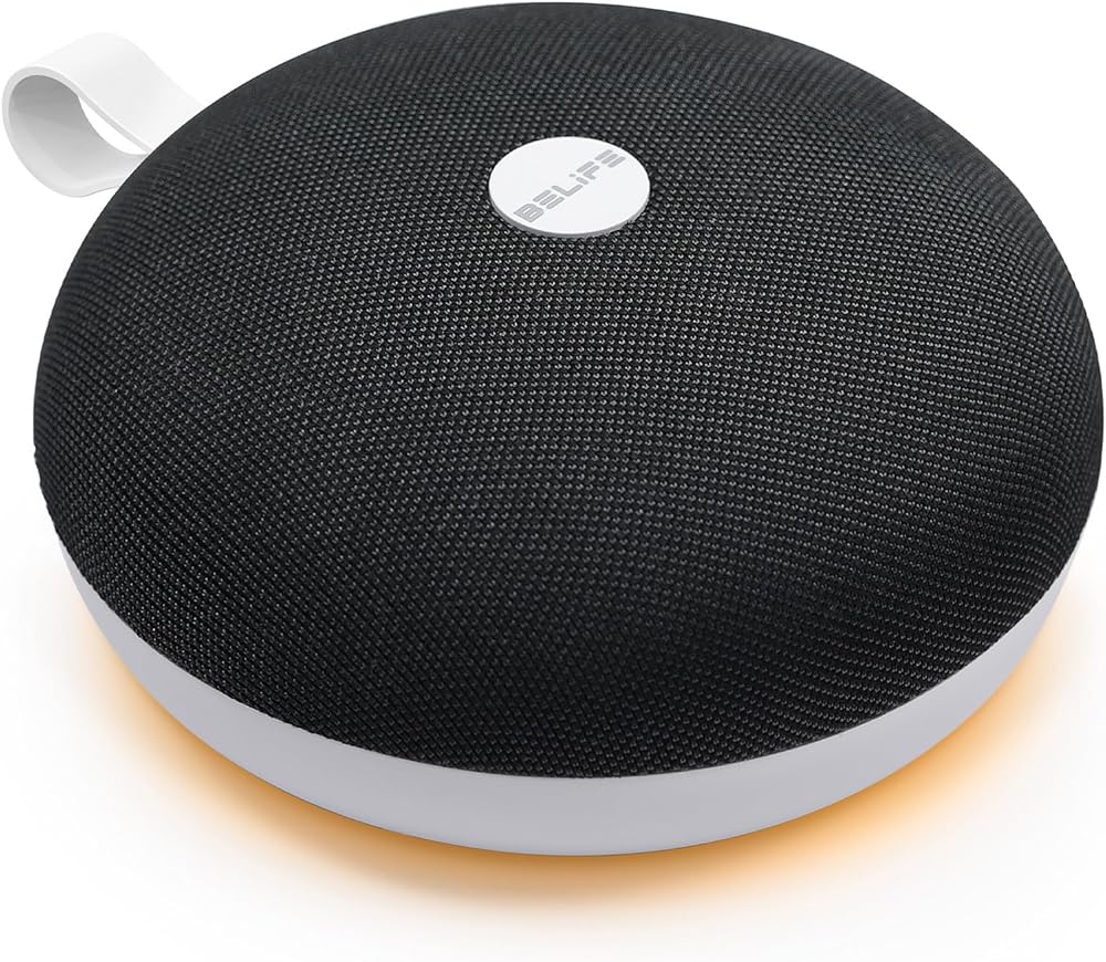 • [سهل الاستخدام وتصميم مضغوط] اضغط على زر الطاقة لتشغيل/إيقاف تشغيل الصوت. اضغط على زر الضوء الليلي لتشغيل/إيقاف الإضاءة الليلية. مع تصميم خفيف الوزن وصغير الحجم، فهو مثالي للمنزل أو المكتب أو السفر.