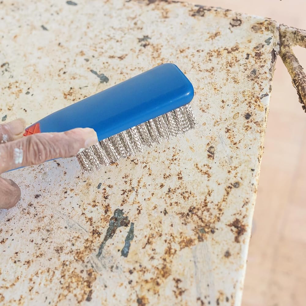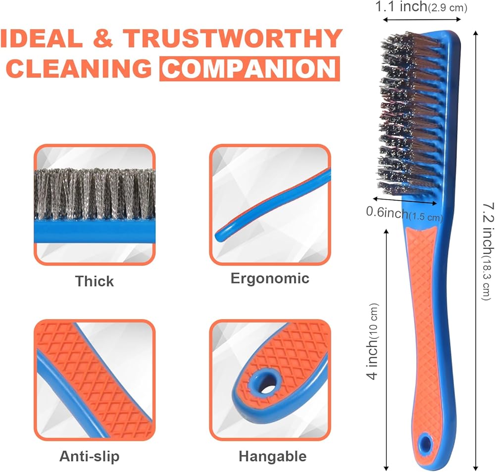 مقبض عملي - تتميز الفرشاة المعدنية الخاصة بنا، والتي تتميز عن الفرش السلكية الصغيرة الأخرى، بمقبض محيطي بطول 10.16 سم من أجل قبضة مريحة. مزدوج الجوانب مع مطاط مضاد للانزلاق، فهو يضمن تثبيتًا آمنًا، حتى تحت الضغط، من أجل استخدام موثوق به وخالي من الانزلاق.