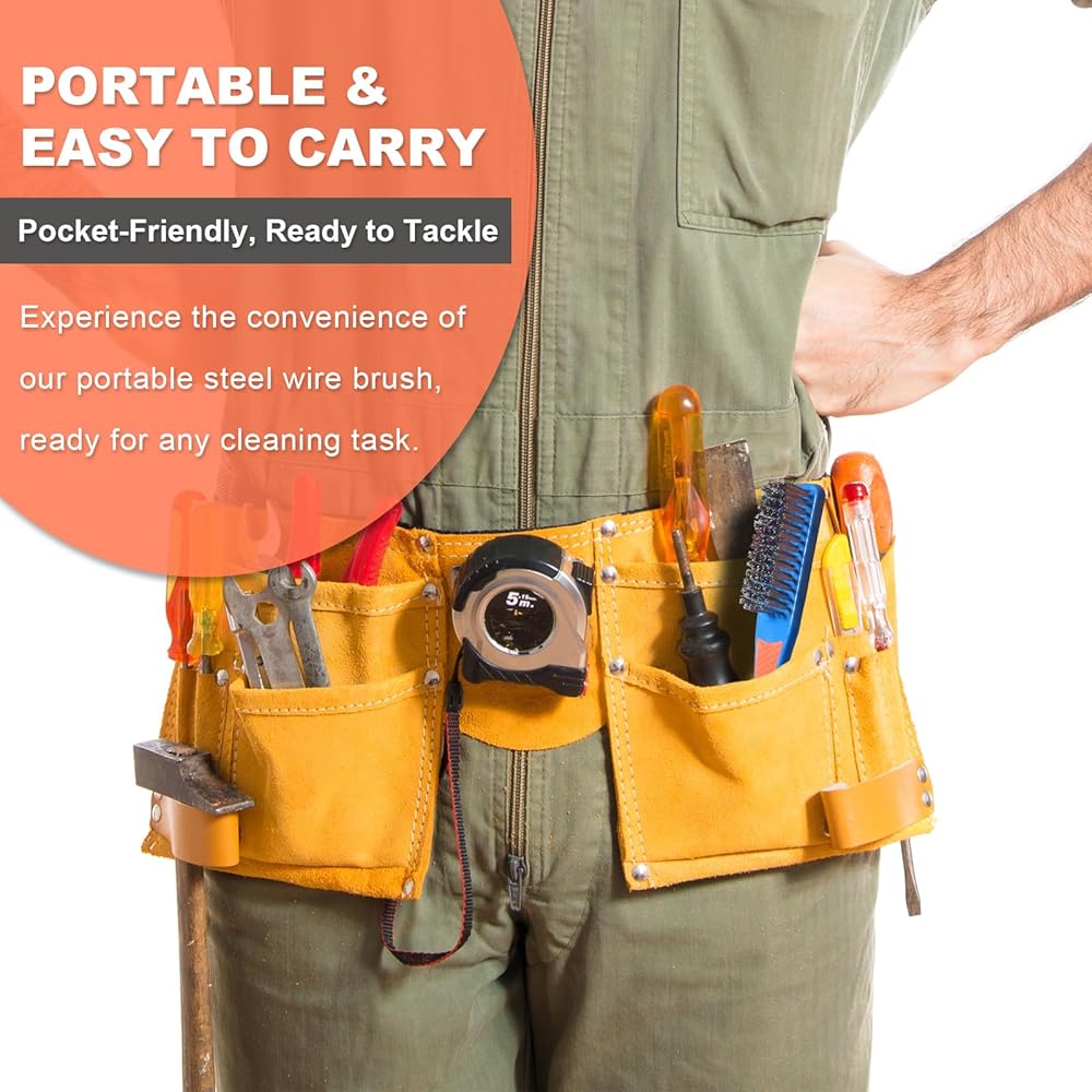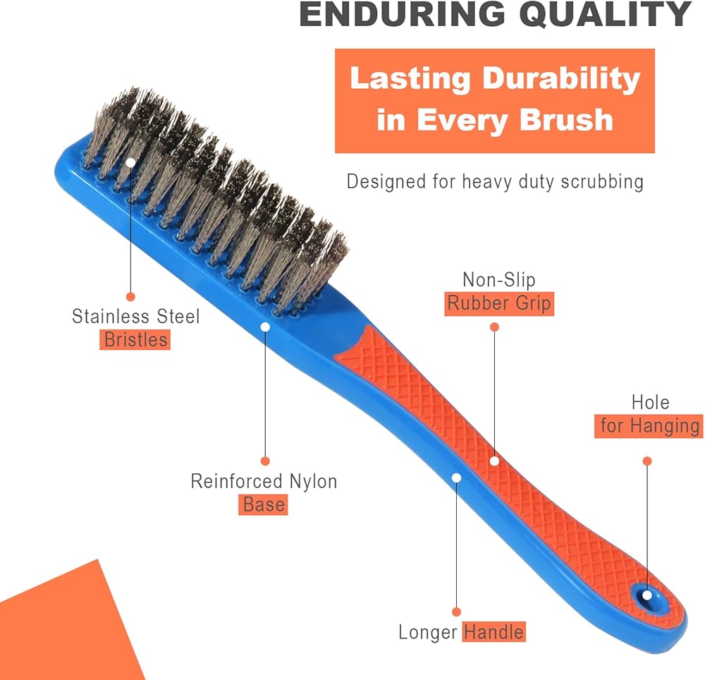 عملي - تغلب على الصدأ وبقع الطلاء والأوساخ وخبث اللحام واللحام والقياس باستخدام فرشاة الأسلاك الفولاذية عالية القوة. متعدد الاستخدامات للعديد من الأسطح، فهو الأداة المثالية للتنظيف الشاق، بدءًا من الأجزاء والمعدات وحتى الآلات، مما يضمن المرونة والكفاءة.