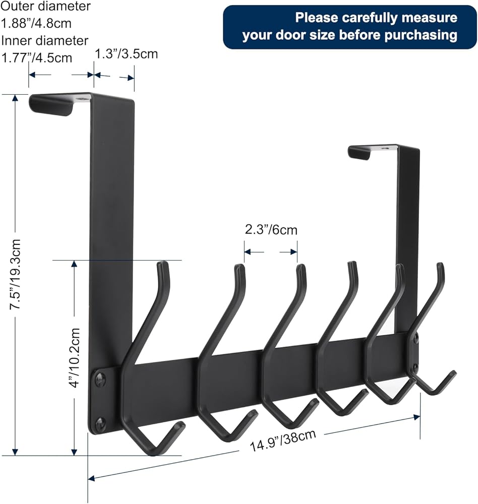 لا حاجة للتركيبات المعقدة، قم بتعليق أغراضك دون عناء! يضيف خطافنا المعدني عالي التحمل والمتعدد الوظائف فوق الباب الراحة لمنزلك. مناسبة لمعظم الأبواب التي يتراوح عرضها من 1.37 إلى 1.77 بوصة (3.5 إلى 4.5 سم)، ما عليك سوى تعليقها لتوفير مساحة أكبر والحفاظ على أغراضك منظمة.