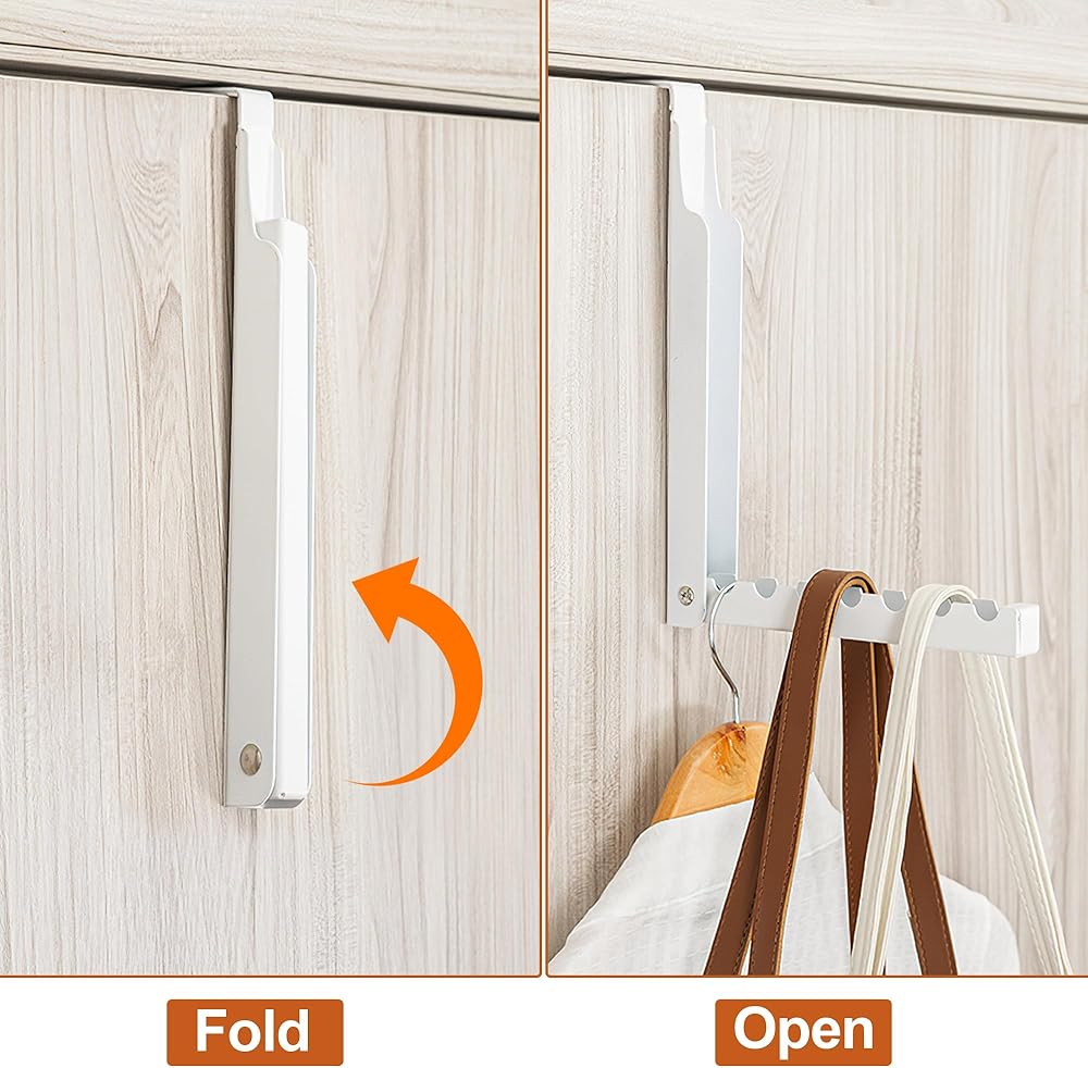 خطافات فوق الباب للتعليق - شماعة ملابس قابلة للطي فوق الباب مع 6 بساتين، رف تجفيف قوي للغاية فوق الباب لتعليق الملابس والمعطف والقبعات والحقائب والمزيد