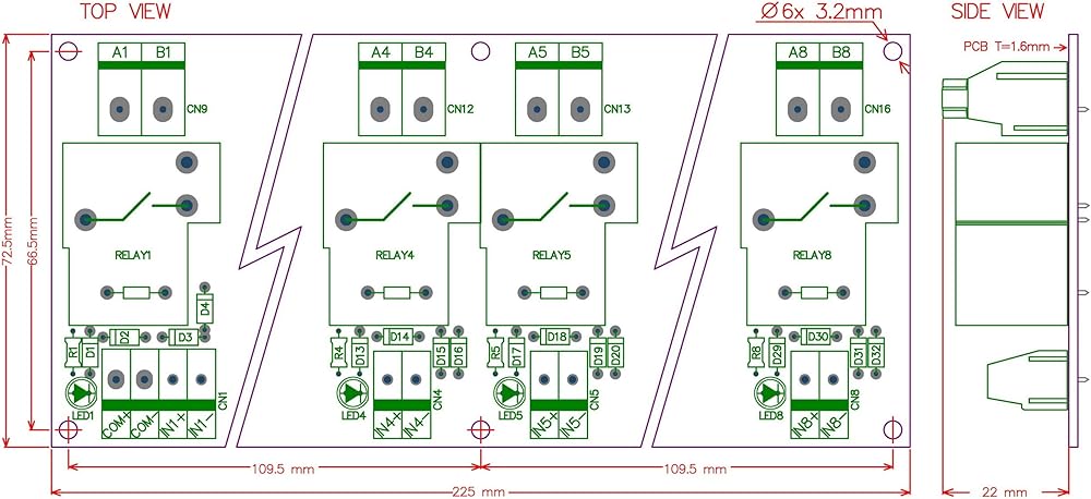 Passive 8 Channel SPST-NO 30 Amp Power Relay Module.
