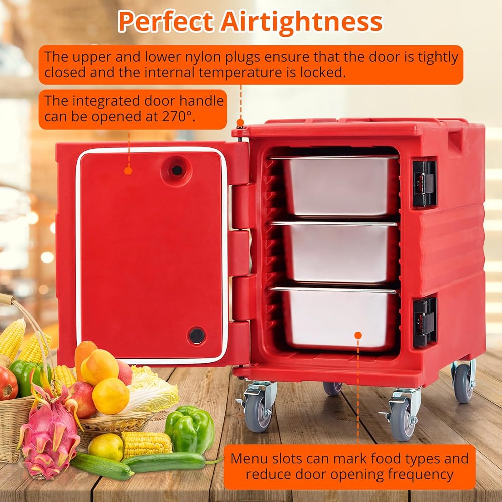 • إغلاق جيد: تضمن مزالج النايلون العلوية والسفلية إغلاق الباب بإحكام وتأمين درجة الحرارة الداخلية. مقبض باب من قطعة واحدة يفتح 270 درجة. يمكن لفتحات القائمة تحديد أنواع الطعام وتقليل تكرار فتح الأبواب.