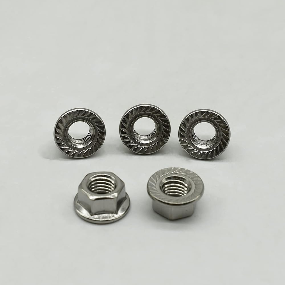 1/4"-20 صامولة سداسية مسننة من الفولاذ المقاوم للصدأ، (100 عبوة)، 304 (18-8) صواميل من الفولاذ المقاوم للصدأ، من SANTIE
