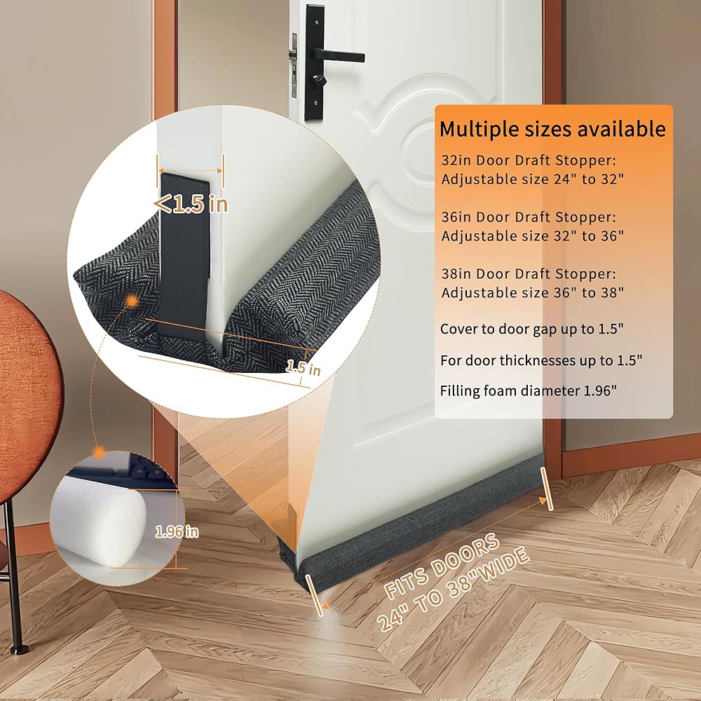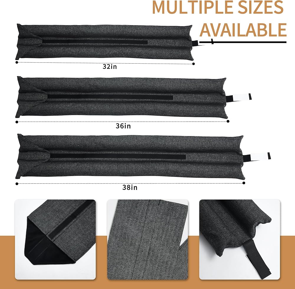 【3 مقاسات يمكن استخدامها في مواقع متعددة】تحتوي سدادات شريط الباب على 3 مقاسات 32 بوصة، 36 بوصة، 38 بوصة، يرجى التحقق من المقاس الذي تحتاجه قبل الشراء. يمكن استخدام سدادات الأبواب العازلة للجزء السفلي من الباب لبابك الأمامي، والباب الخلفي، وباب دخول المرآب، وباب غرفة النوم، وباب الحمام، كما أنها مناسبة للنوافذ للمساعدة في إغلاق الهواء الساخن أو البارد.
