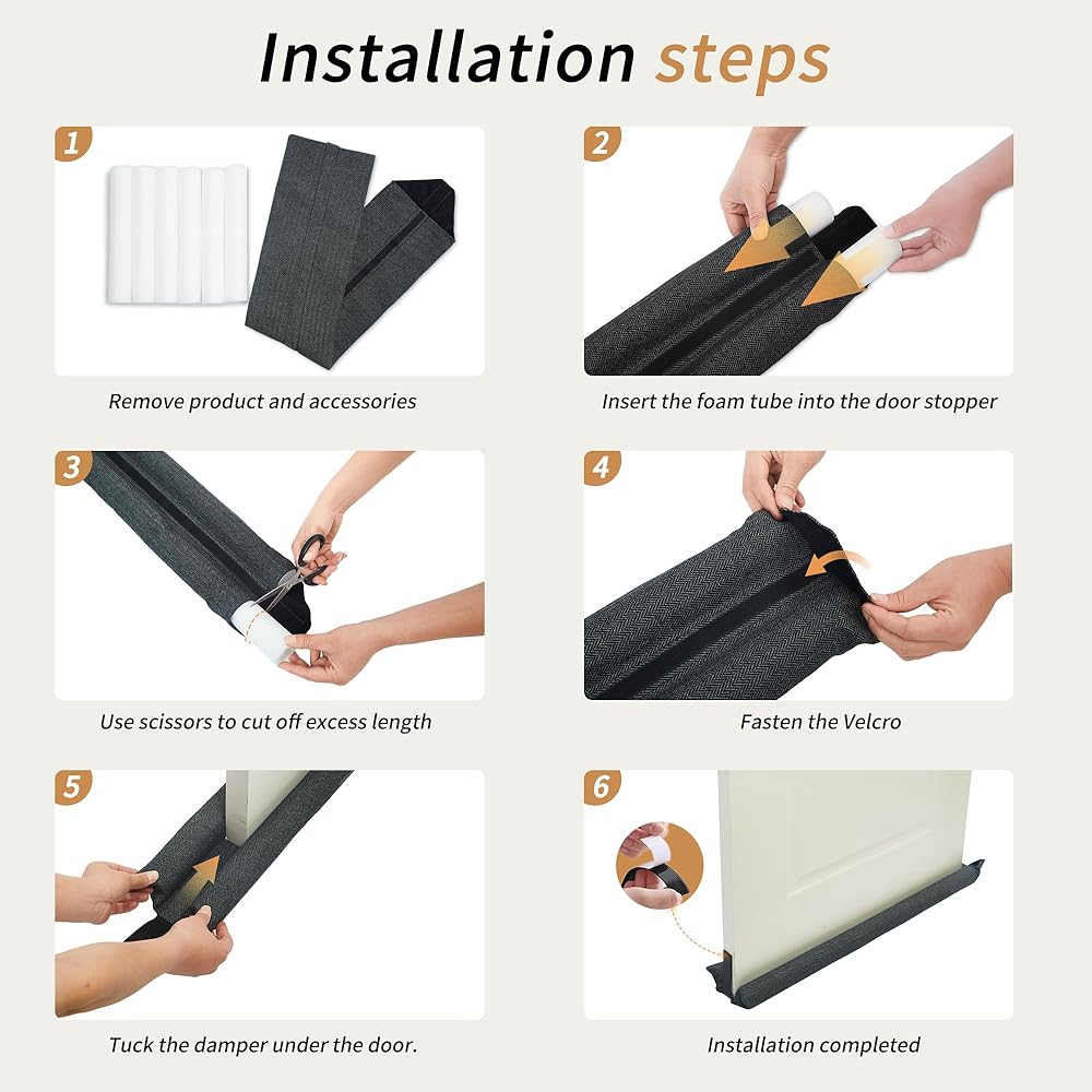 【كيفية التثبيت】تركيب سدادة التيار الكهربائي خالٍ تقريبًا من الأدوات من خلال أربع خطوات بسيطة: قم بقص اللفة على طول الباب؛ وضع اللفات مباشرة في الغطاء دون مساعدة؛ قم بطي الفائض وأغلقه بشريط فيلكرو؛ أدخل سدادة الباب في سدادة الباب. احجب تيارات الهواء وأضفي الدفء على منزلك من خلال واقي تيار الباب الخاص بنا. يتكامل تصميمه البسيط بسلاسة مع ديكور منزلك.